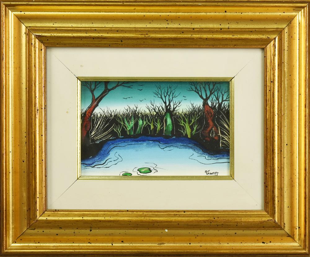 Vianes PAESAGGIO LACUSTRE olio su cartone telato, 10X15cm firma