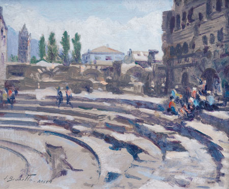 olio su cartone cm. 24x30, firma e località (Aosta) in basso a sinistra e al retro.