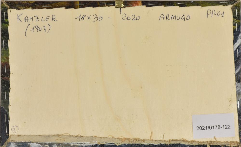 Ugo Armaroli KANZLER 1903 olio su tela applicata su tavola, cm 20x30 firma al...