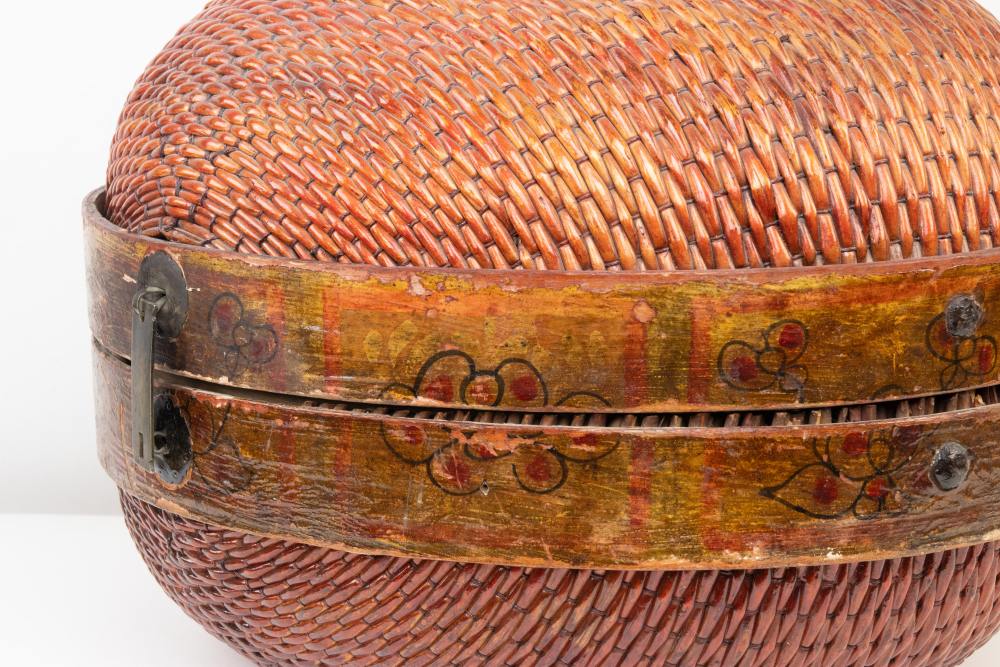 Scatola decorativa d'epoca Primi anni del XX secolo Legno laccato con decorazioni 30 x 42 x 42 cm