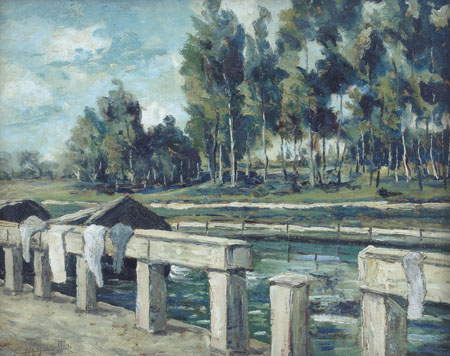 AGNETTI CIRO Milano 1913 - 1984Naviglio Paveseolio su masonite cm. 40x50,...
