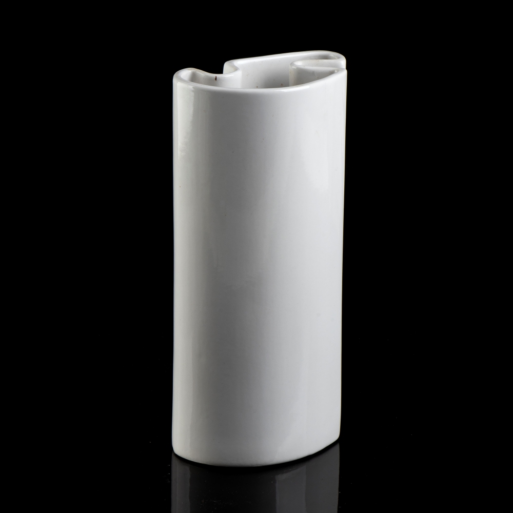 26x13x8 cm Vaso in vitreous china di colore bianco, disegnato da Angelo Mangiarotti per Brambilla. Riedizione degli anni '80.