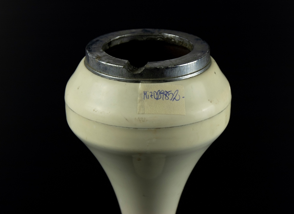 Resina chiara, metallo 54 x 18 x 18 cm Posacenere da bar vintage Interamente realizzato in resina chiara; la parte superiore del posacenere è in metallo. Buone condizioni. Sono presenti alcuni graffi sul metallo