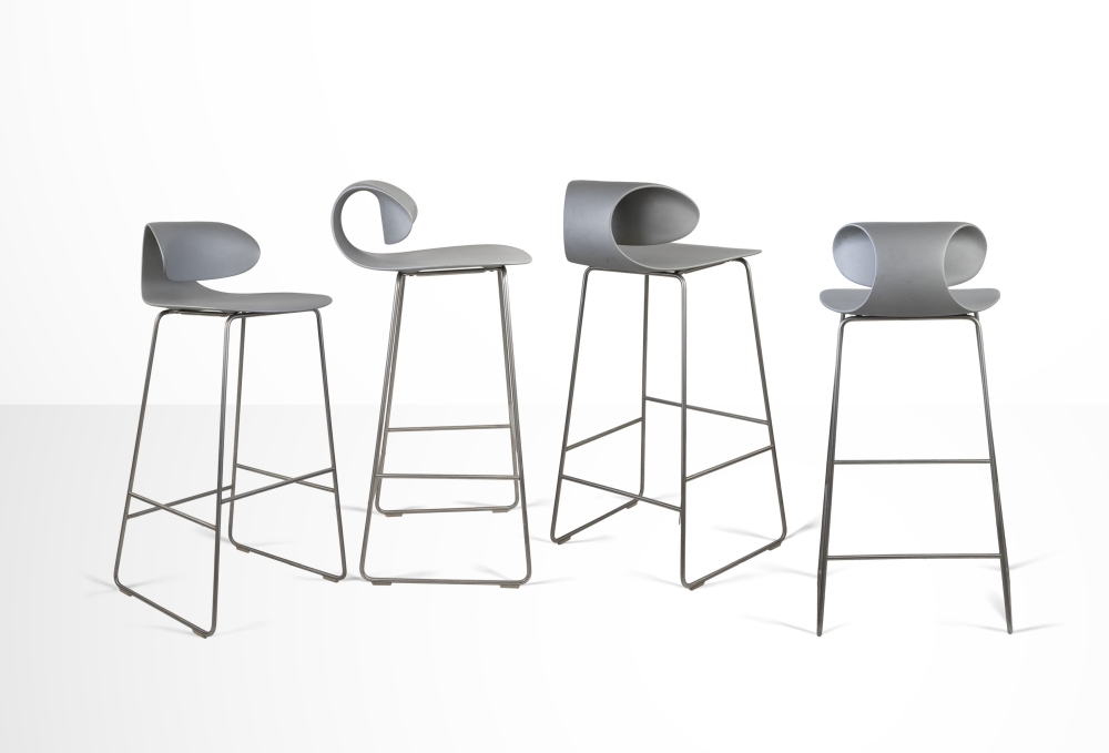Set di 9 panche Maxima grigie 1990s Policarbonato stampato con struttura e poggiapiedi in acciaio 99 x 50,8 x 53,5 cm