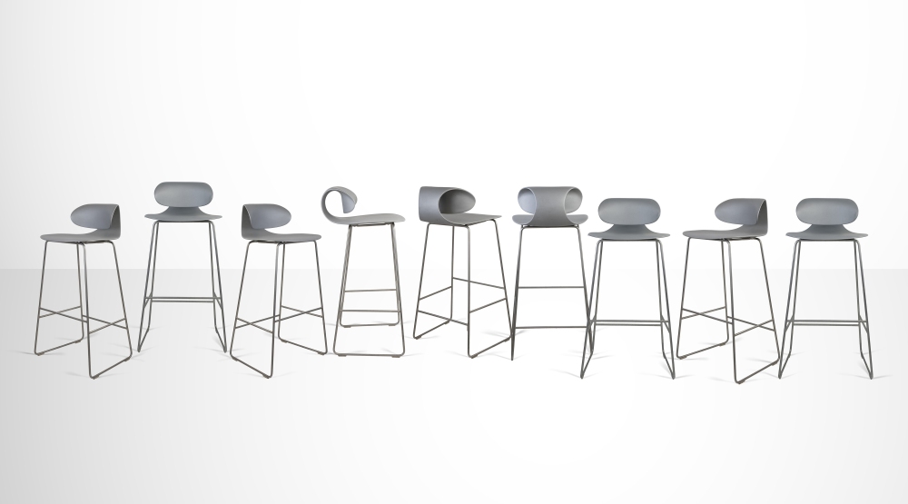 Lotto 72 | Set di 9 panche Maxima grigie 1990s Policarbonato stampato con struttura e poggiapiedi in acciaio 99 x 50,8 x 53,5 cm