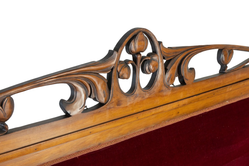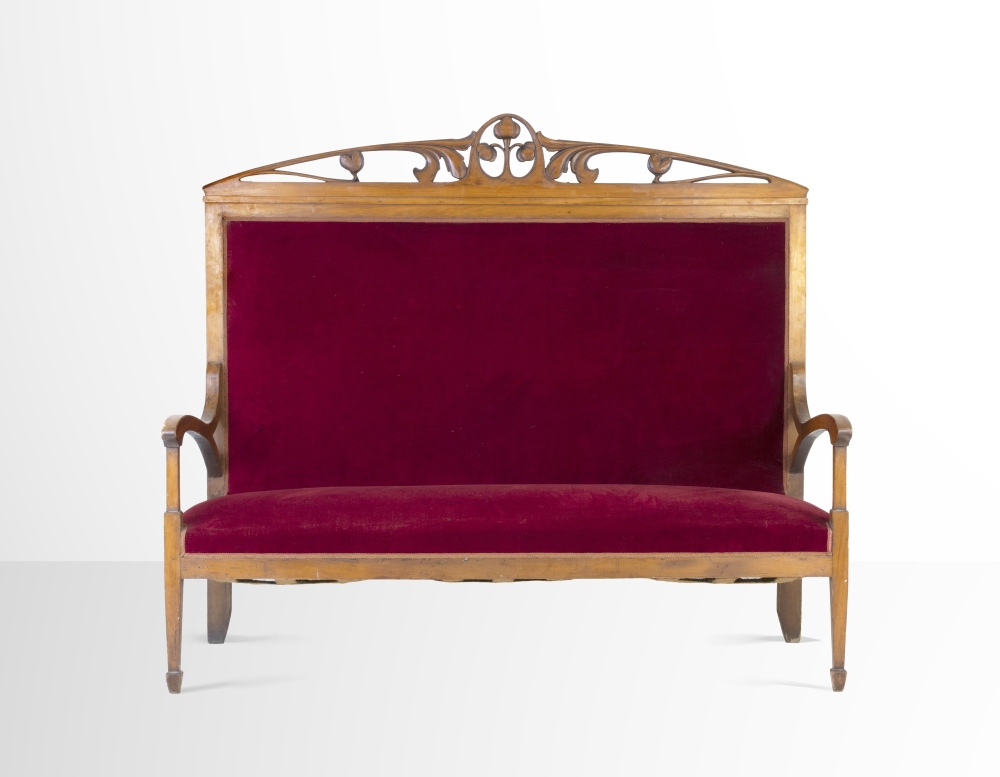 Legno e velluto rosso 142 x 62 x 160 cm Divano in velluto rosso del Medioevo Italia Buone condizioni, usura coerente con l'età e l'uso