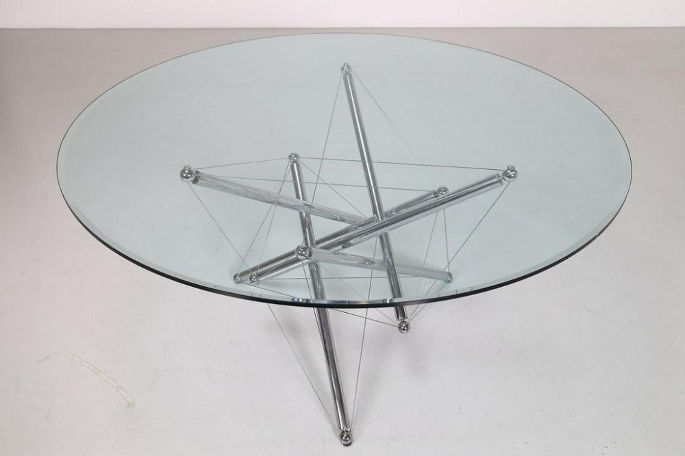 Metallo cromato e cristallo 135 x 72 x 72 cm Tavolino in cristallo di Theodore Waddel per Cassina Modello 713 Tavolo realizzato in metallo cromato e cristallo.