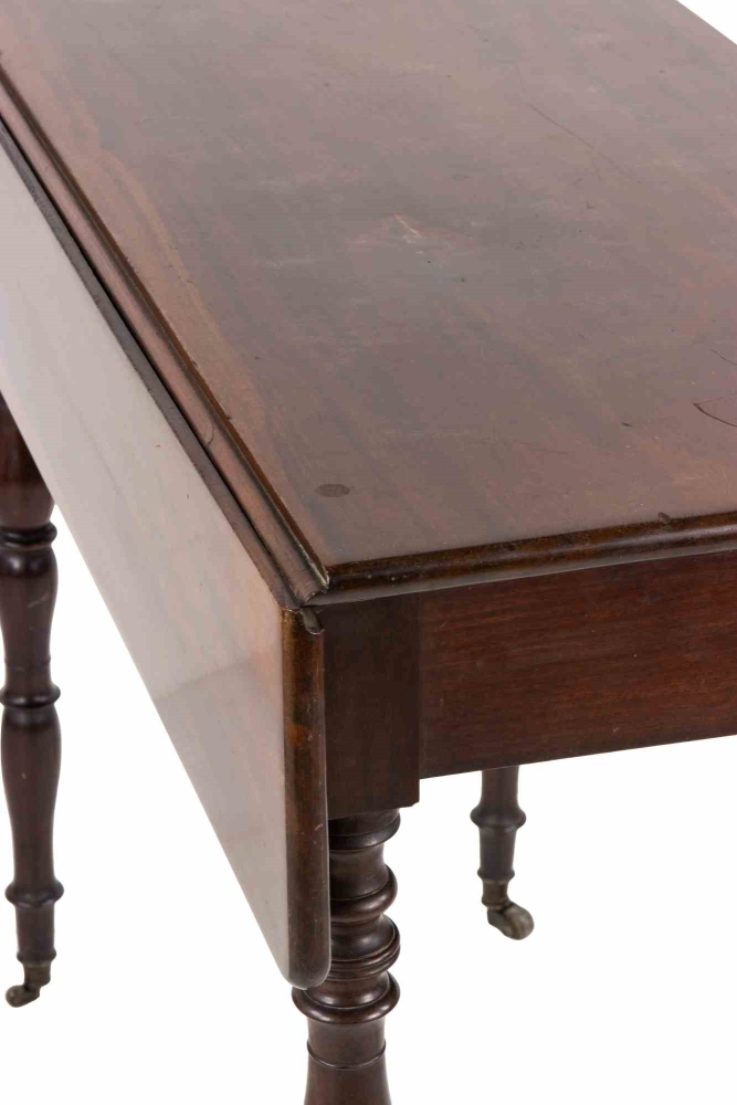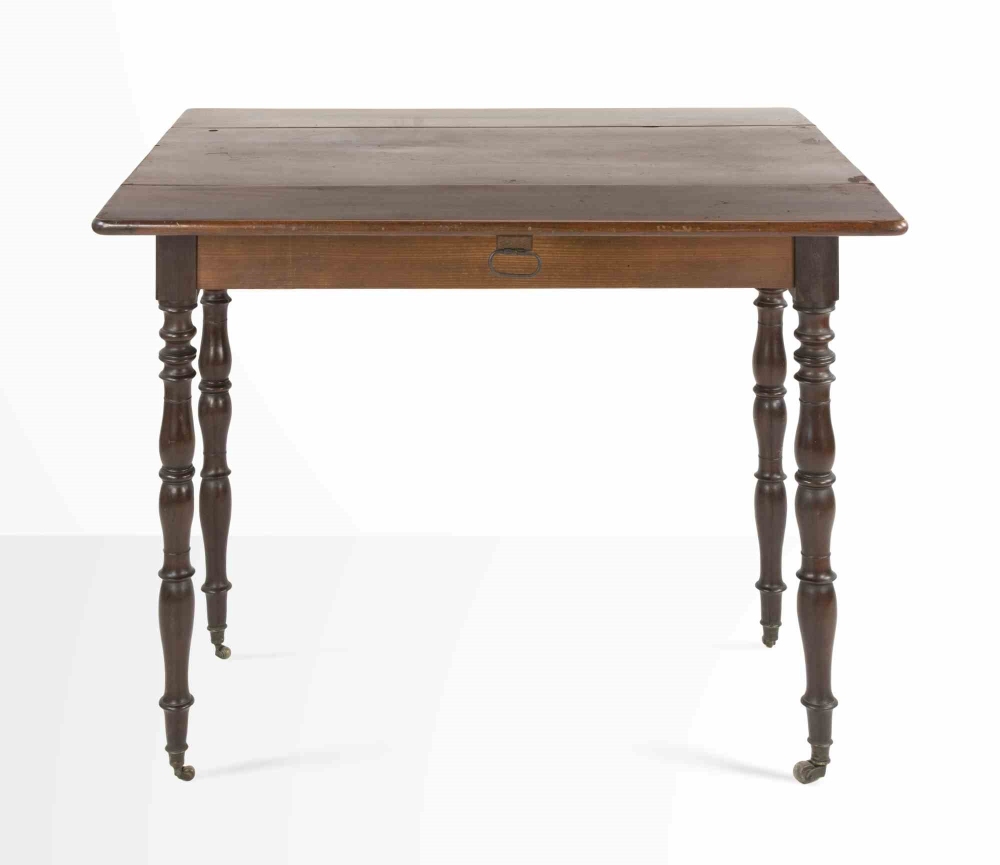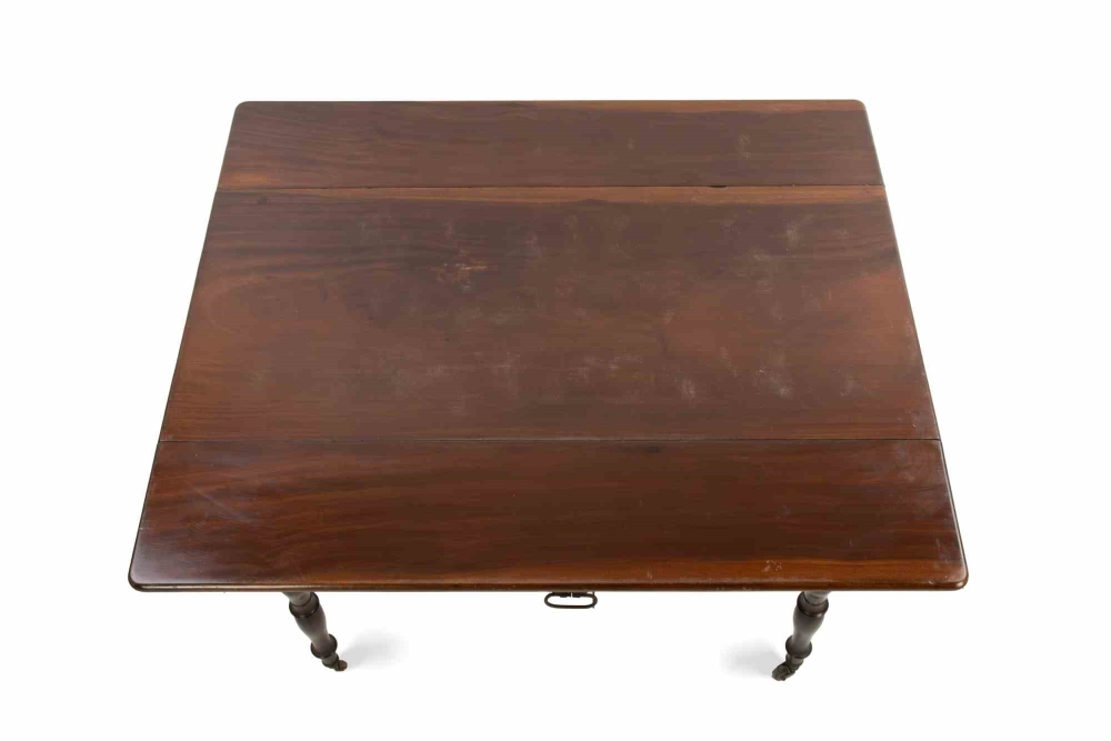 72 x 85 x 42 (cm) Tavolino in mogano massiccio con tiretto laterale e 4 gambe con colonne tornite.