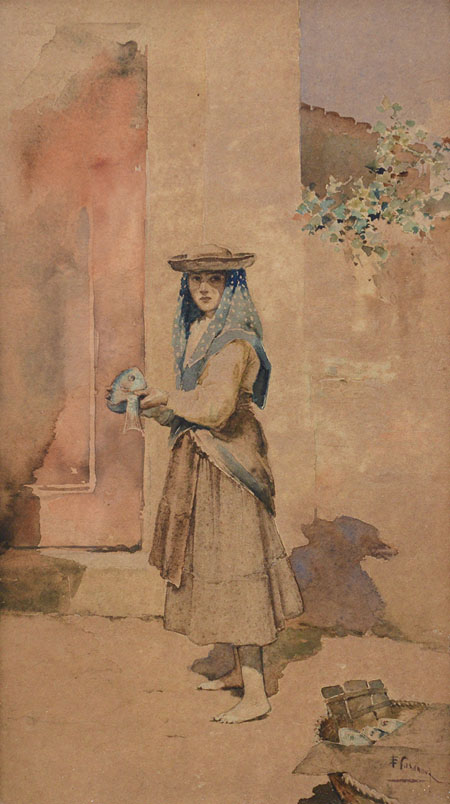 acquerello su carta cm. 33,5x20, firma in basso a destra, timbro della Galeria Jorce (Rio De Janeiro - Brasil) al retro, presenta forte ingiallimento alla carta.