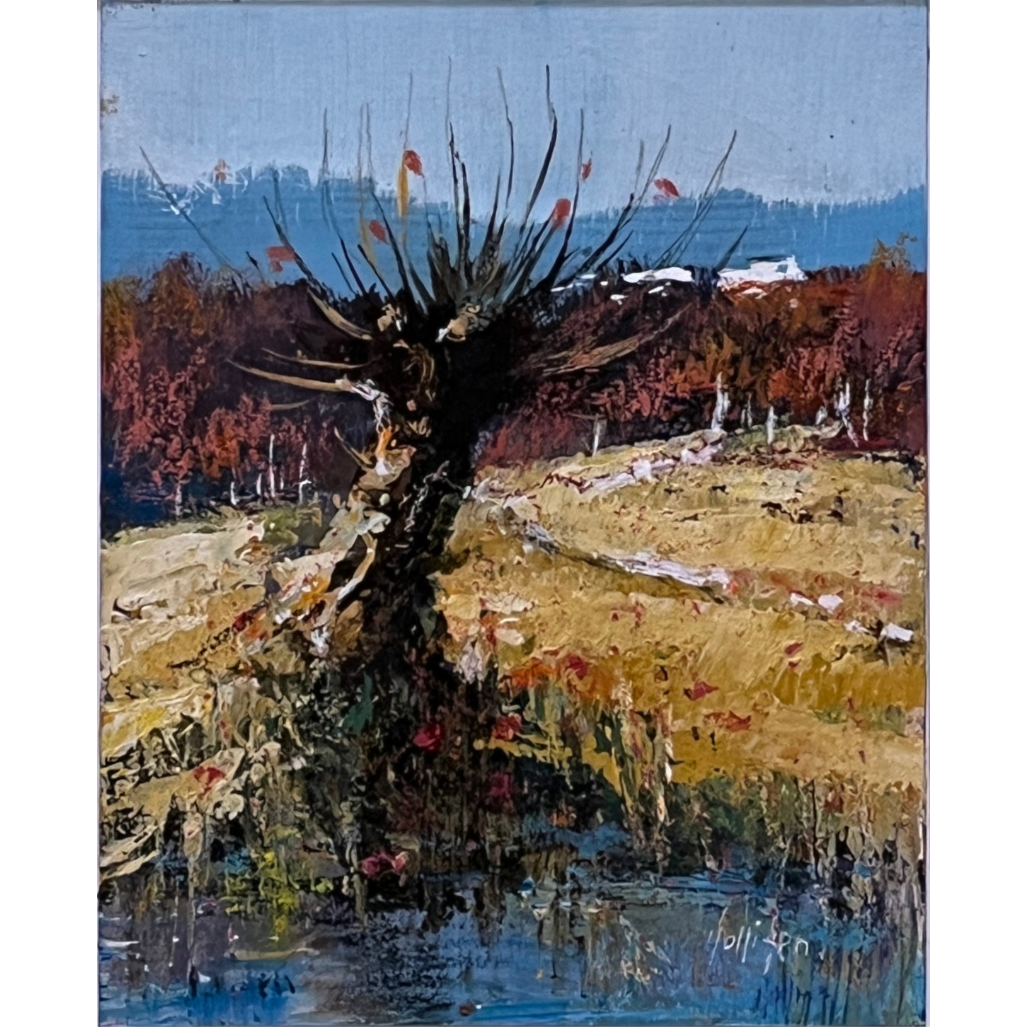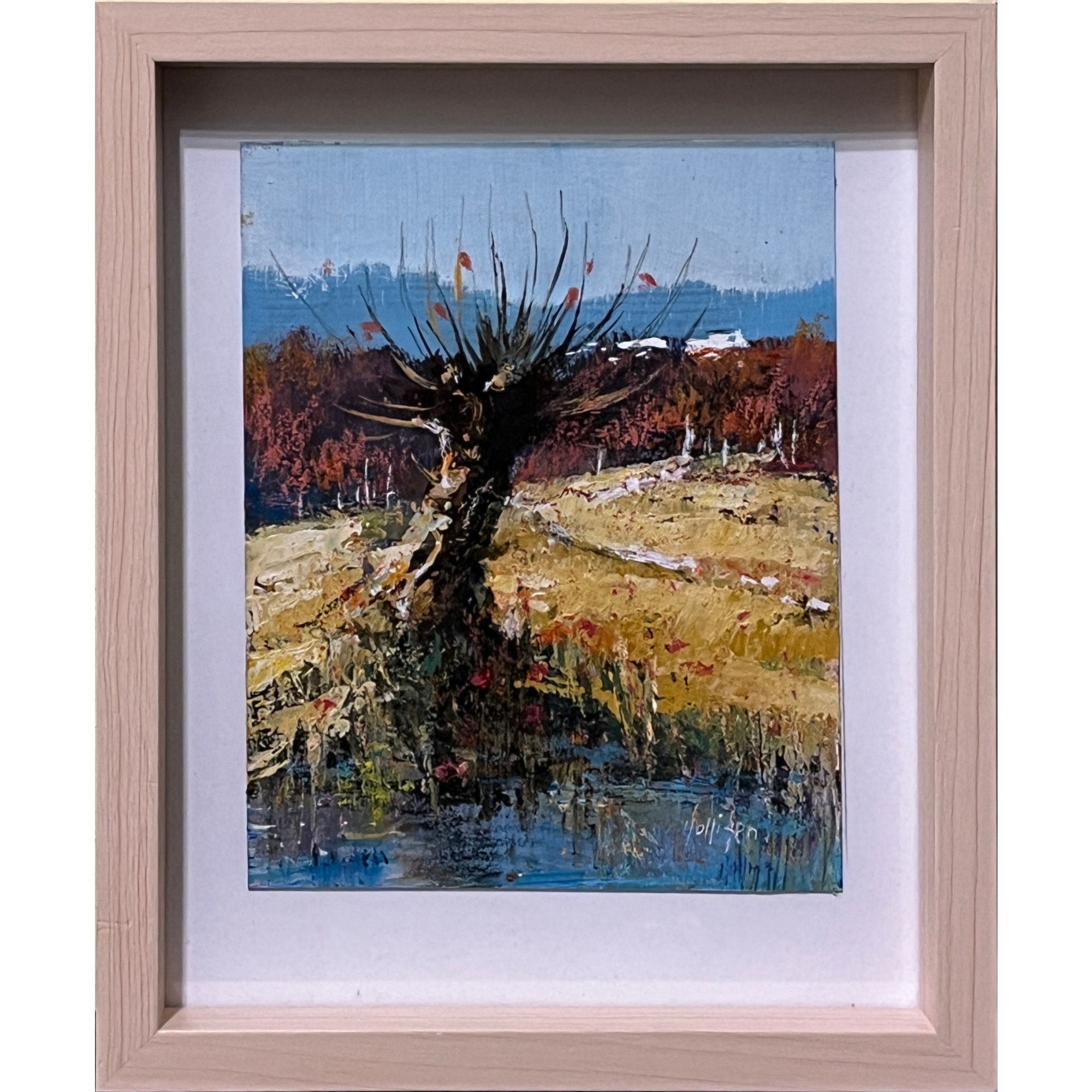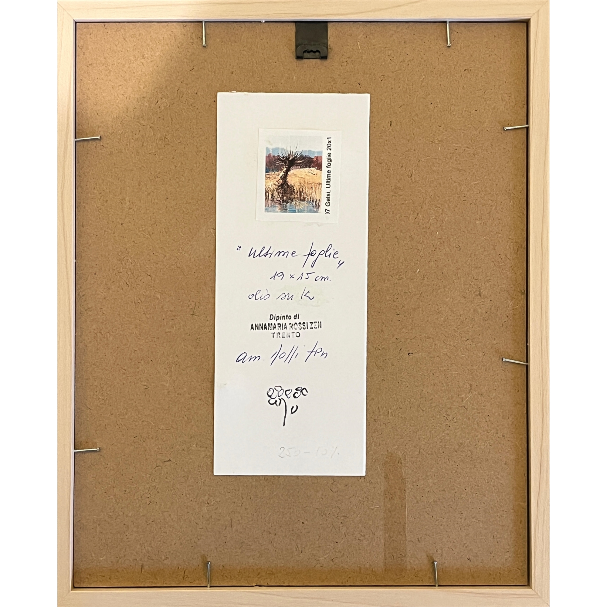 Annamaria Rossi Zen, Ultime foglie, 2021, olio su cartone, 25x19. In cornice