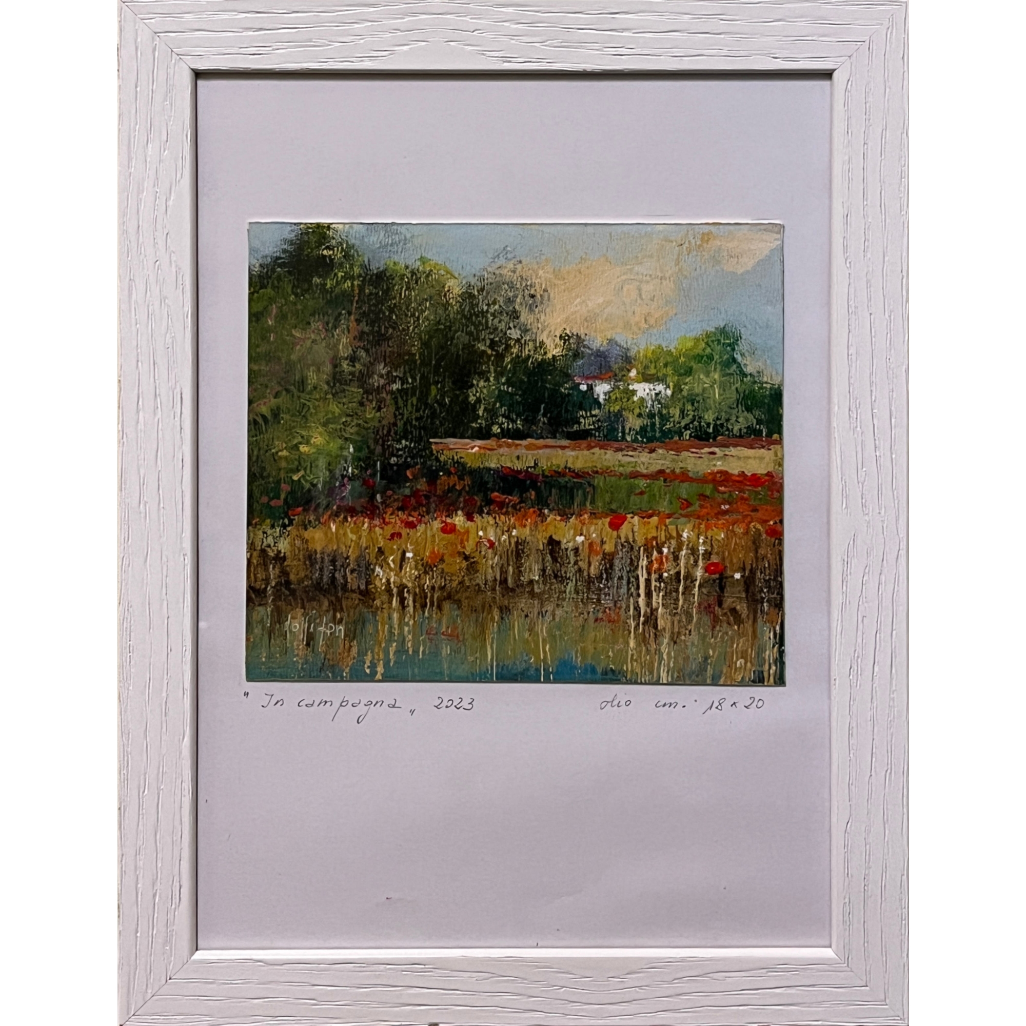 Annamaria Rossi Zen, In campagna, 2023, olio su cartone, 18x20. In cornice