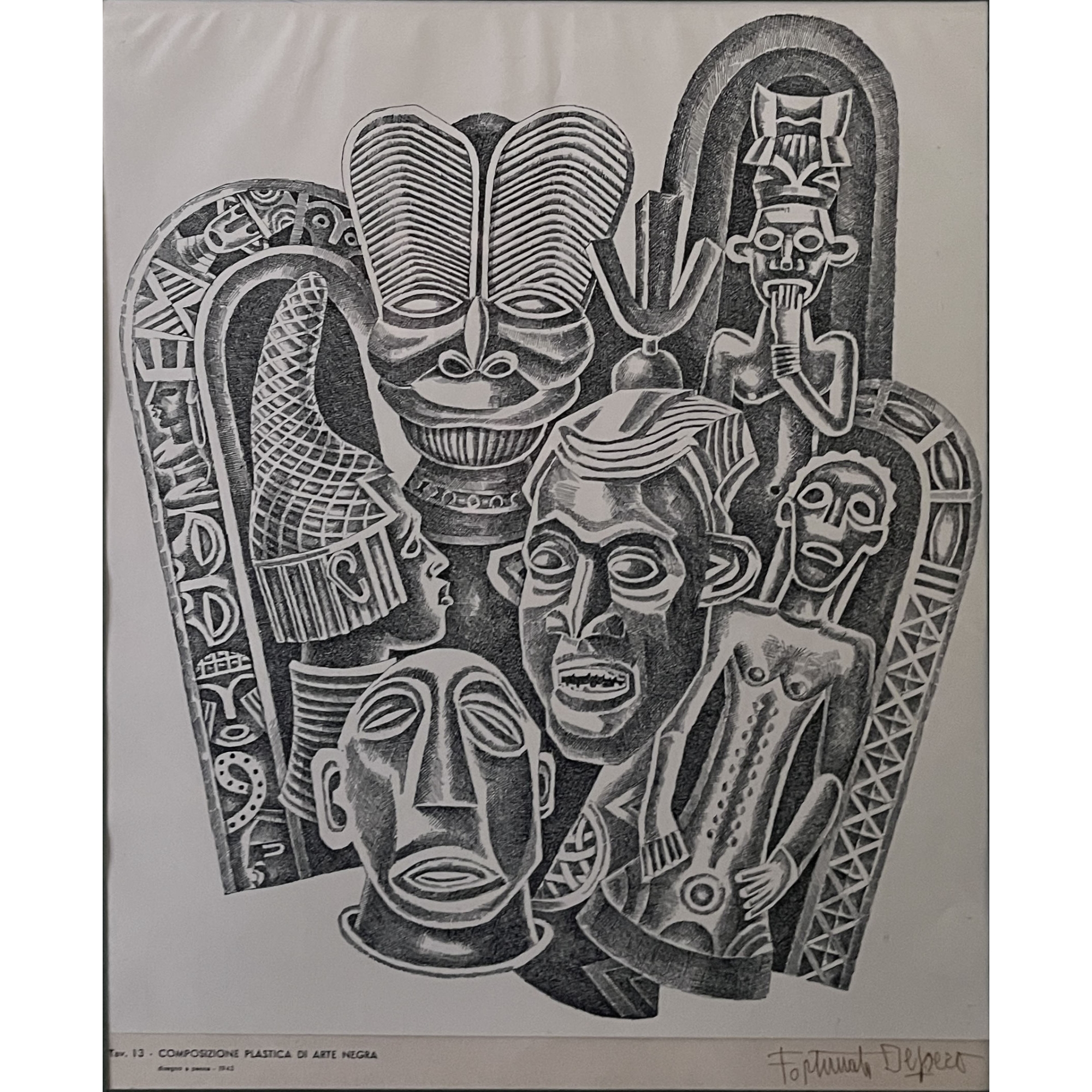 Fortunato Depero , Composizione plastica di arte negra (1943), stampa...
