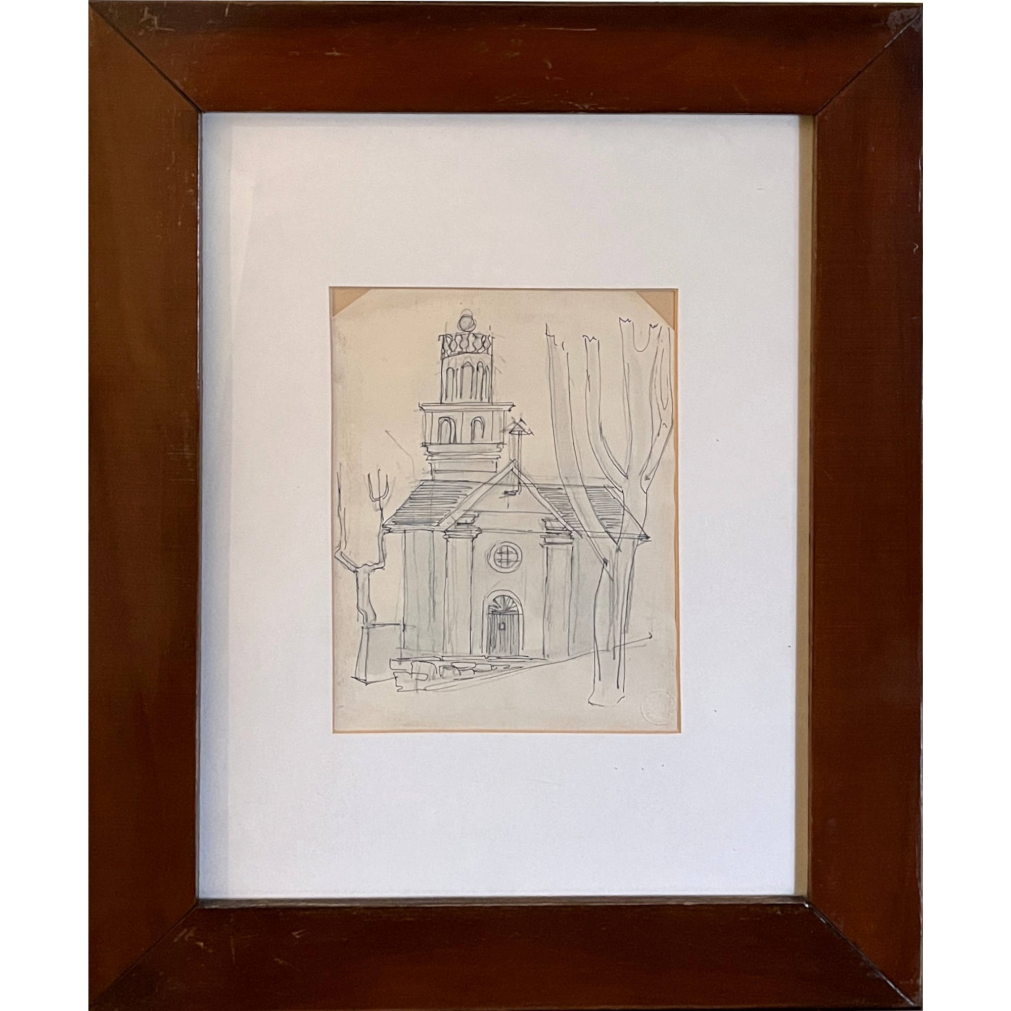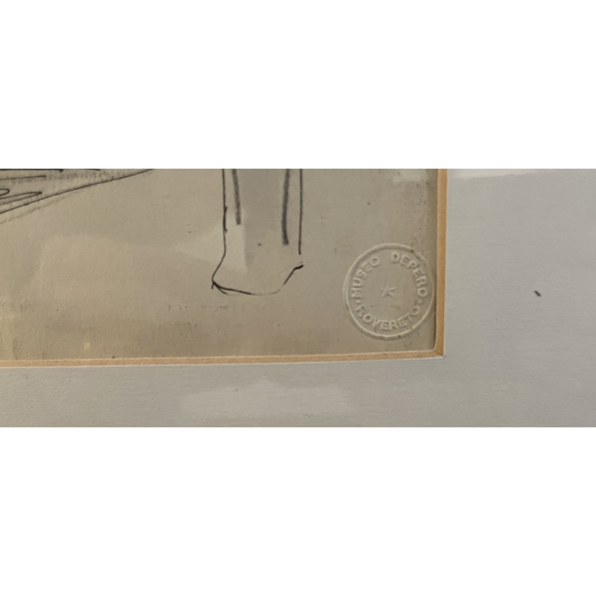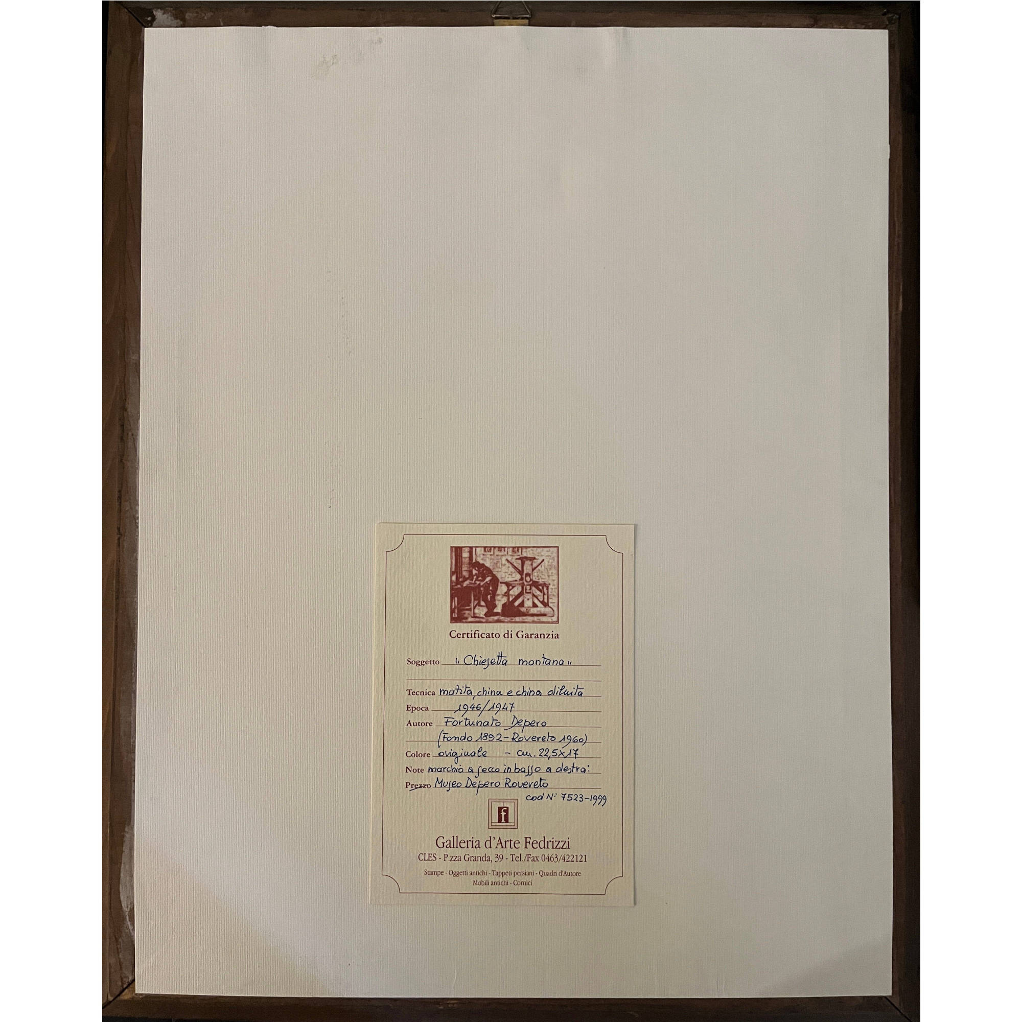 Fortunato Depero, Chiesetta montana, 1946/1947, Matita e china su carta, cm 22,5x17. Marchio a secco in basso a dx. Archiviato presso il Museo Depero di Rovereto (Tn), nr. 7523-1999. Al retro è presente l’etichetta “Certificato di Garanzia” della Galleria d’Arte Fedrizzi. LOTTO SOTTO RISERVA. L’opera è pubblicata sul volume ‘’F. Depero, Attraverso il futurismo’’