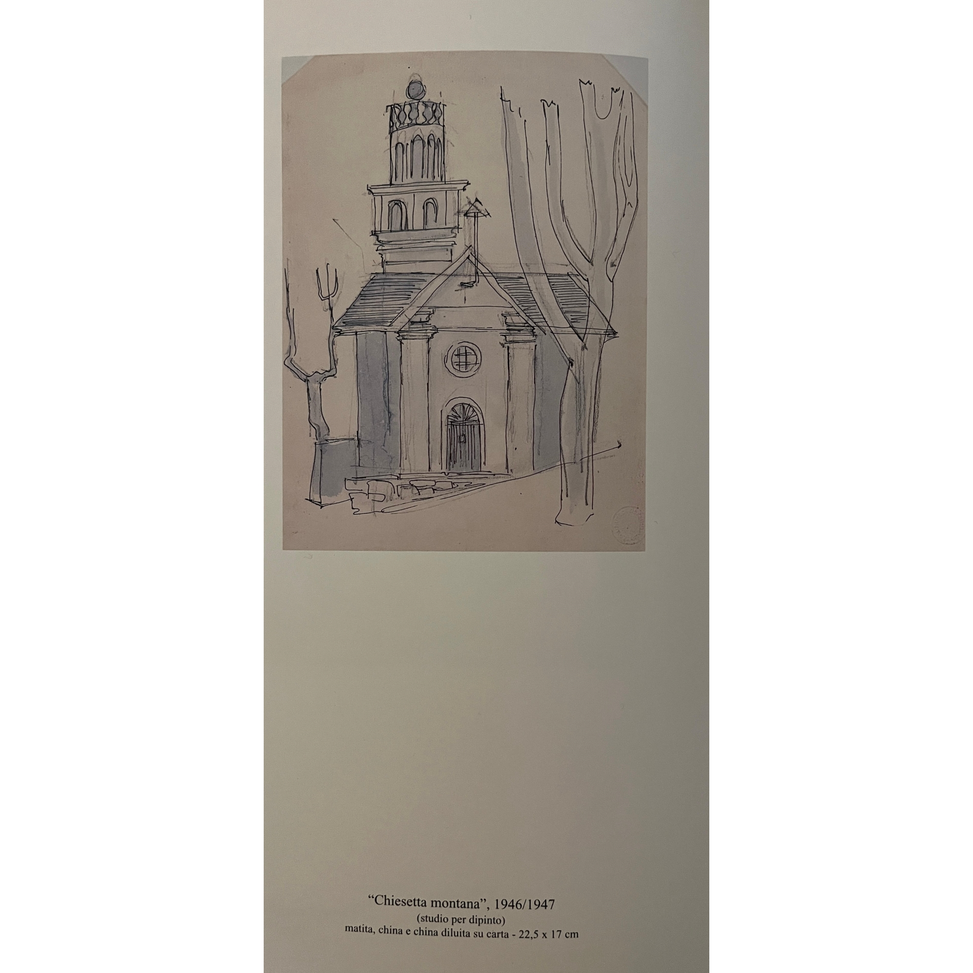 Fortunato Depero, Chiesetta montana, 1946/1947, Matita e china su carta, cm...