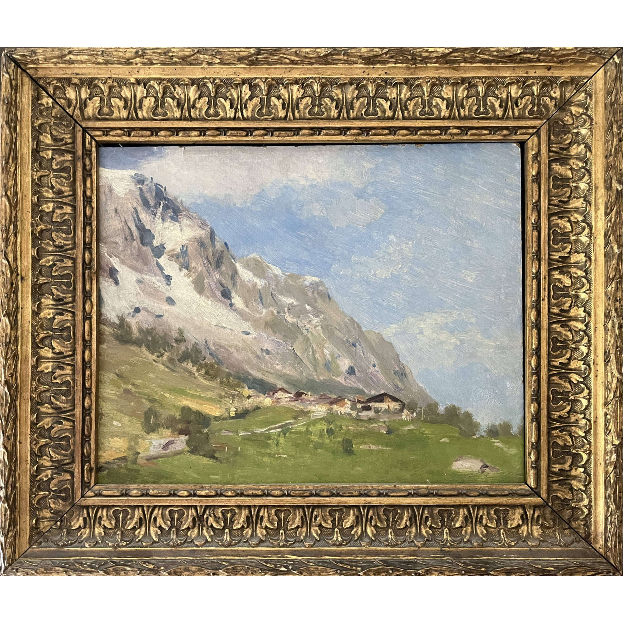 Paesaggio Alpino (primi anni '20 del 900), cm 27x27, olio su cartone. Autore da identificare ma, data la pregevole fattura, l'opera è riconducibile alla corrente artistica trentina tipica di quegli anni. In cornice