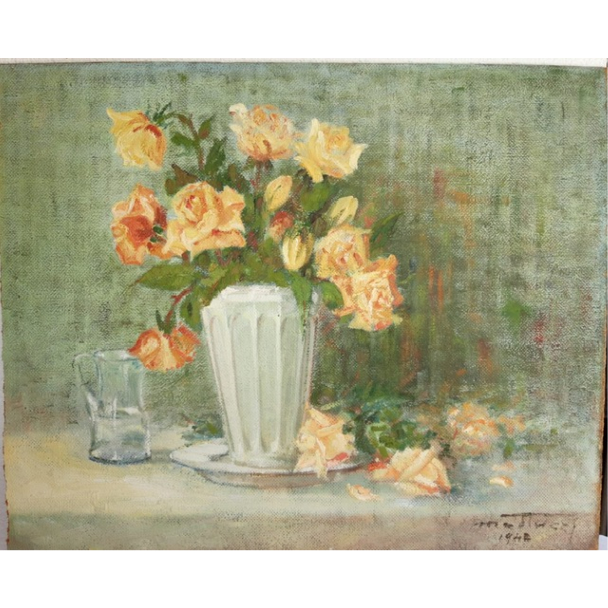 Lotto 63 | Guido Mattuzzi, Vaso di fiori con al retro autoritratto, 1948, olio su tela....