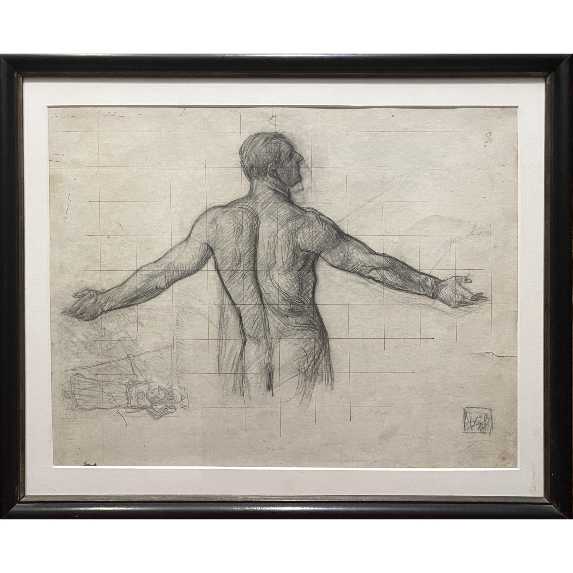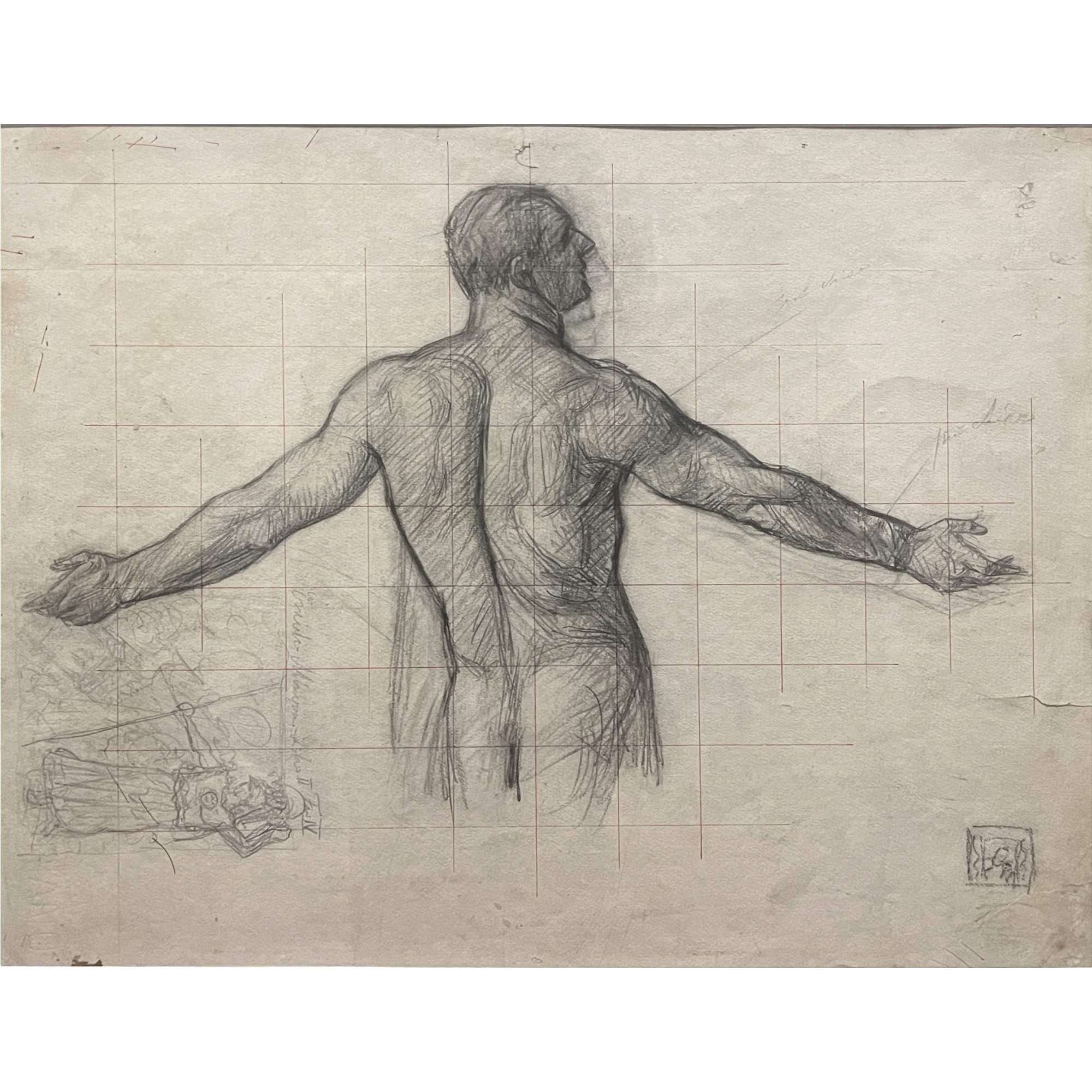 Lotto 65 | Luigi Ratini, Studio di figura maschile con bozzetto raffigurante dea...