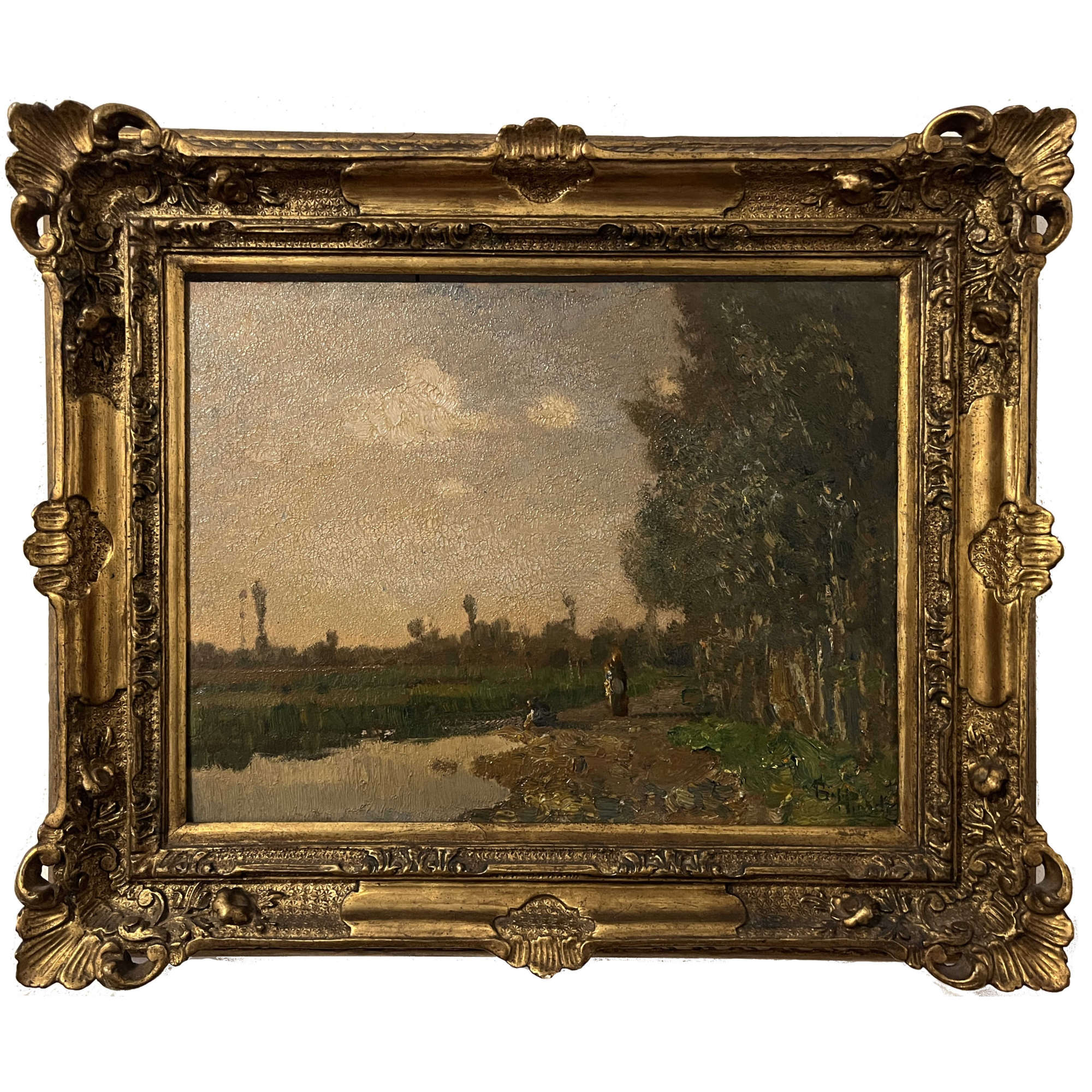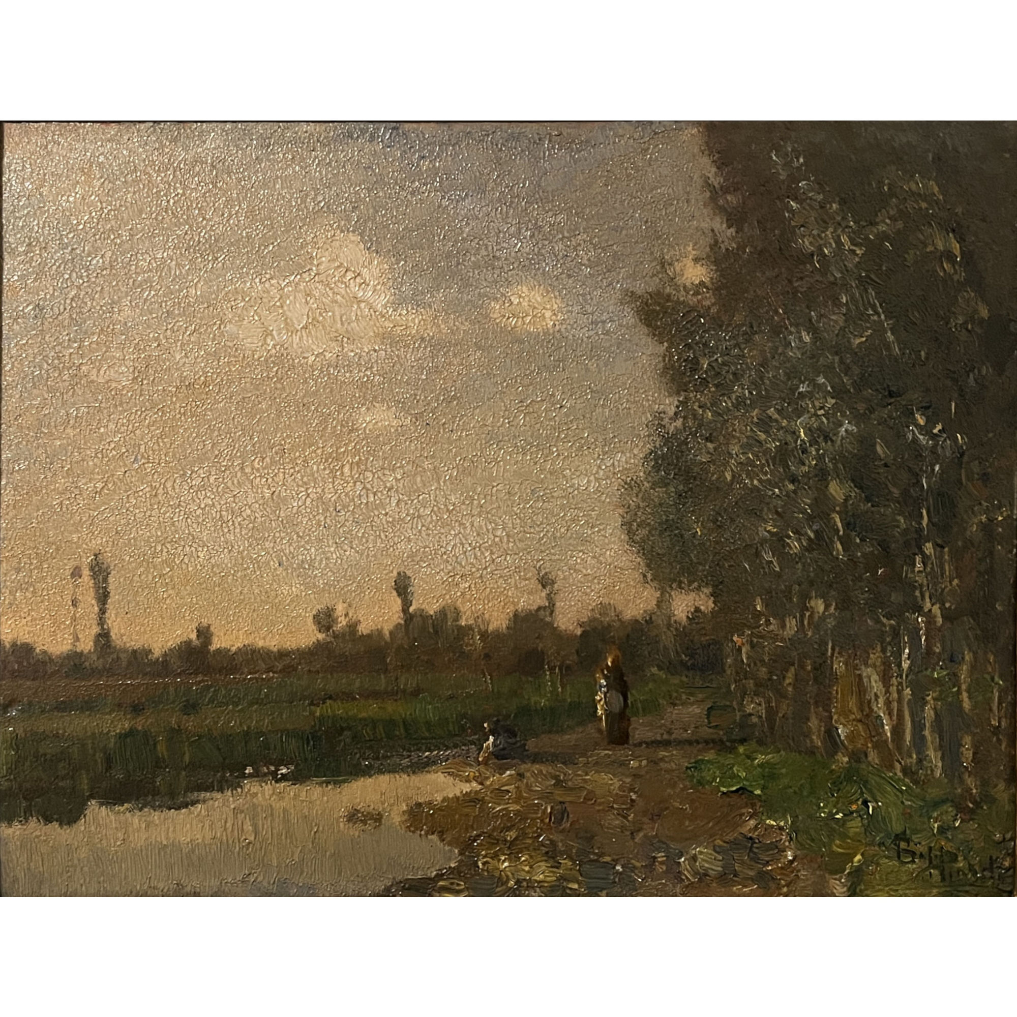 Beppe Ciardi, Veduta del fiume Sile,1925, olio su tavola, cm 29x38. In cornice. Firmato in basso a dx. Firma e data al retro.
