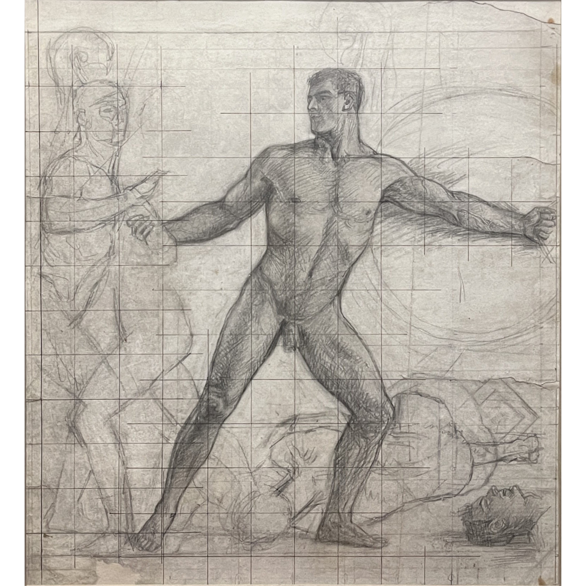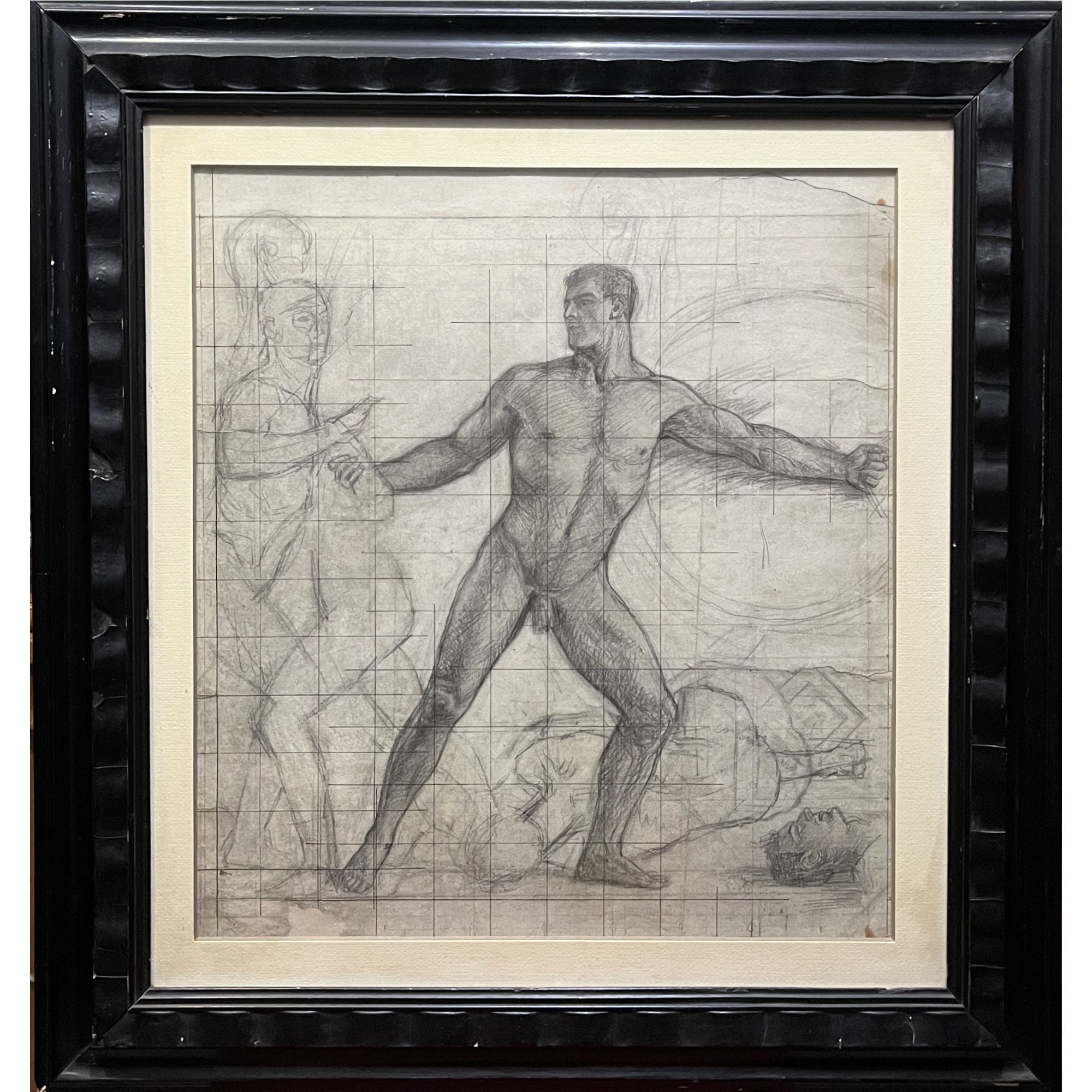Luigi Ratini, disegno preparatorio, carboncino, cm 52x48. In cornice....