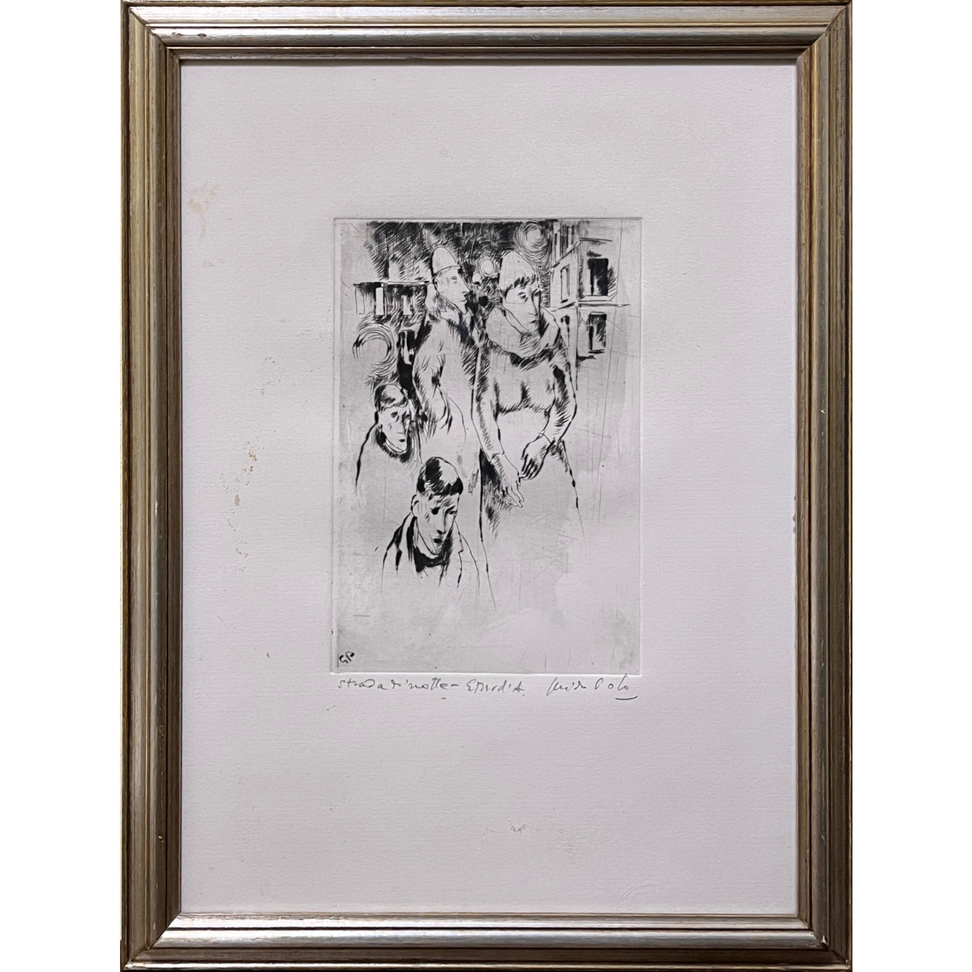 Guido Polo, Strada di notte, prova d’autore, cm 22x15,5. In cornice cm 46x36.