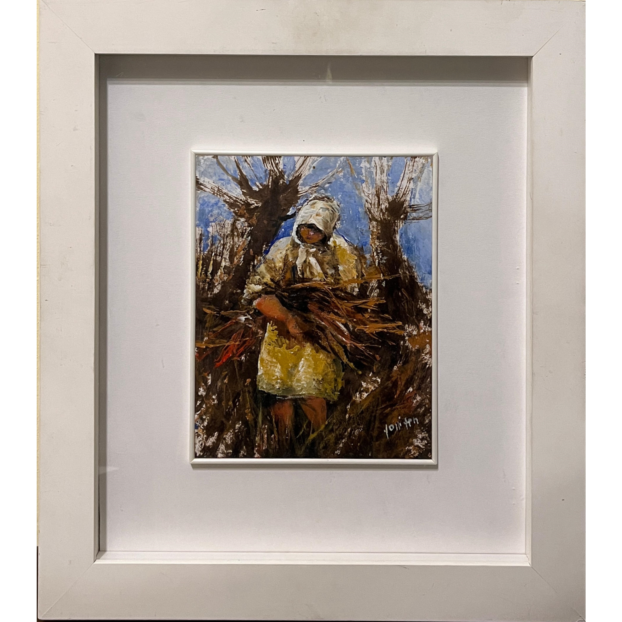 Annamaria Rossi Zen, Contadina polesana d'inverno, 2023, olio su cartone, 22x17. In cornice
