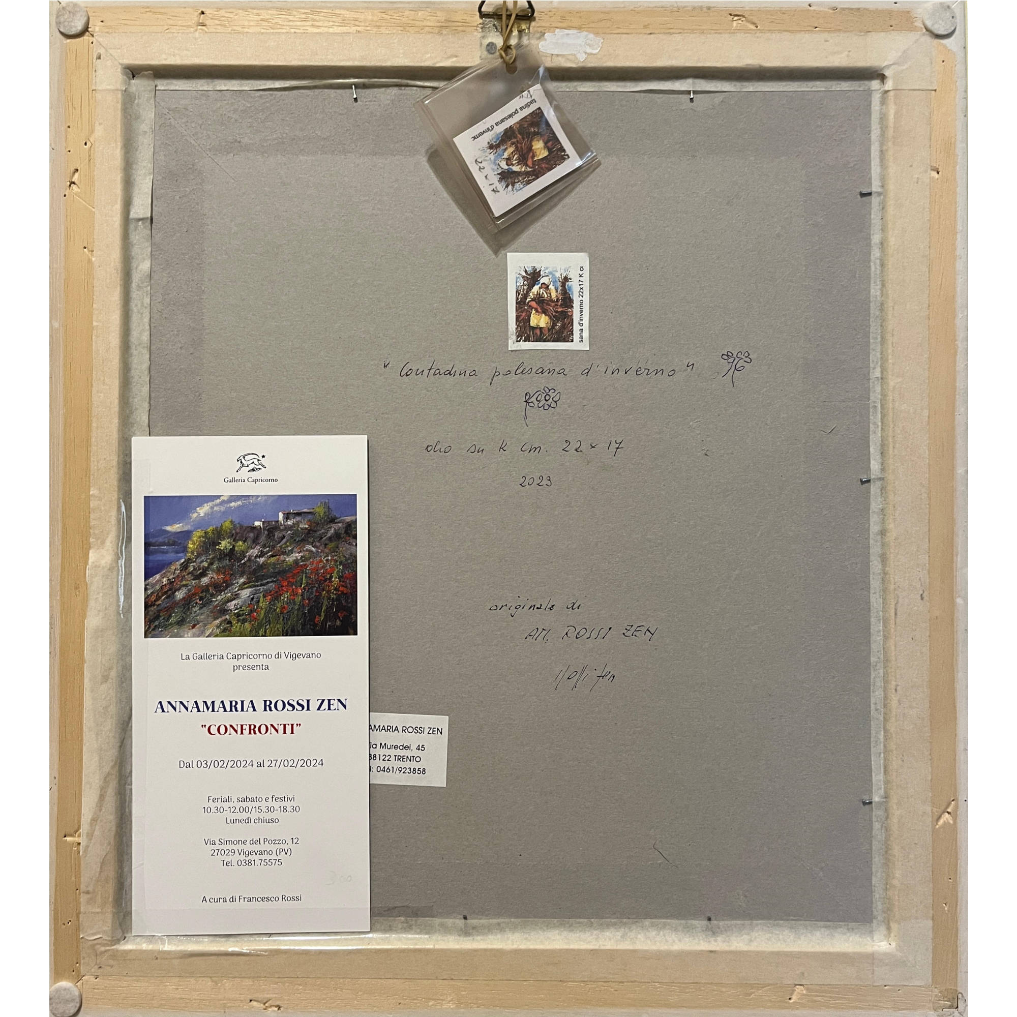 Annamaria Rossi Zen, Contadina polesana d'inverno, 2023, olio su cartone,...