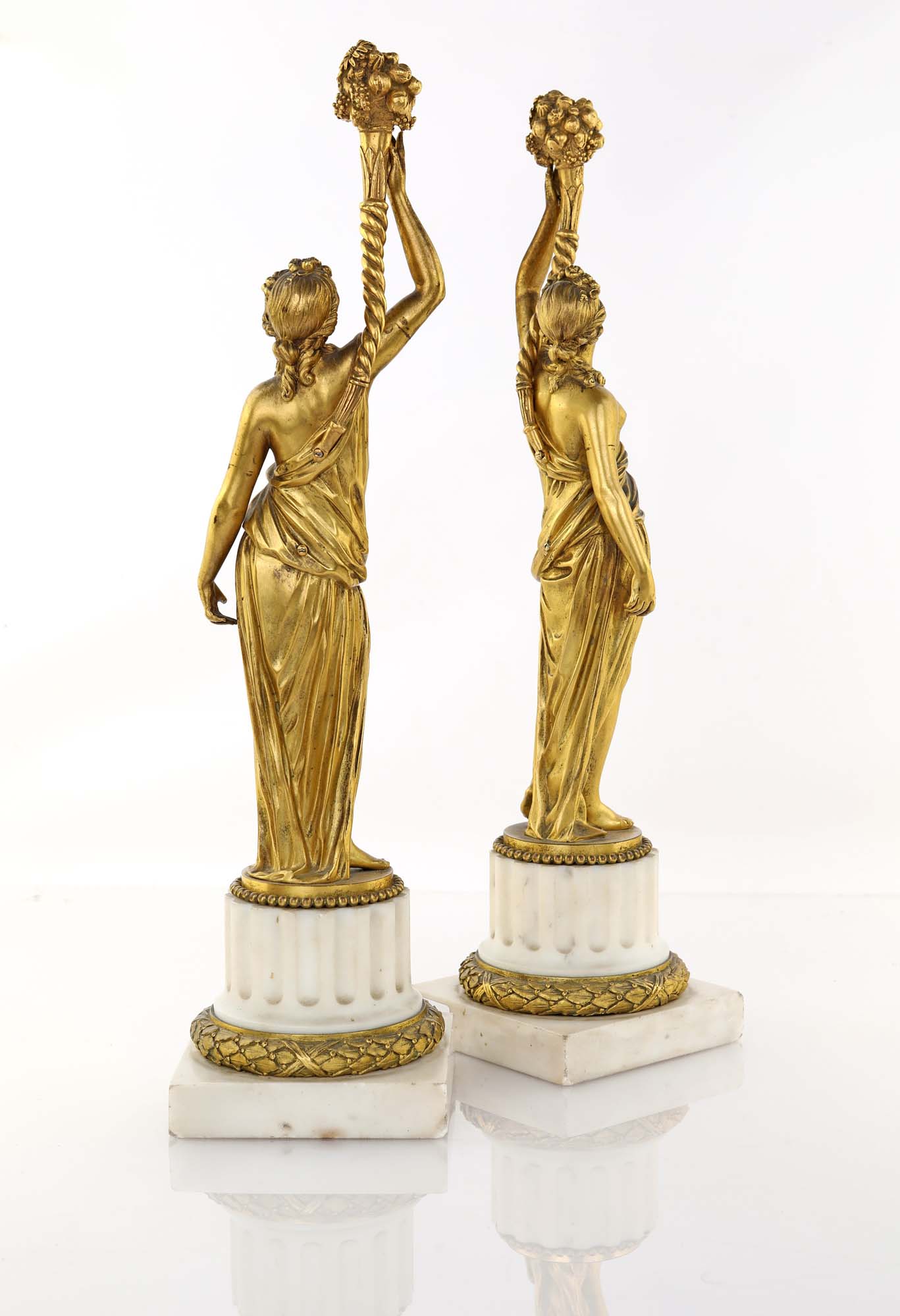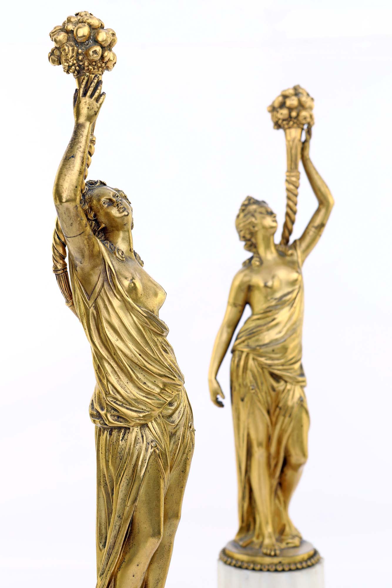 Coppia di figure femminili speculari in bronzo dorato, fine del XVIII secolo...