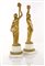 Coppia di figure femminili speculari in bronzo dorato, fine del XVIII secolo su rocchio di colonna scanalata in marmo bianco guarnita da corona d'alloro in bronzo; base quadrangolare altezza cm 46