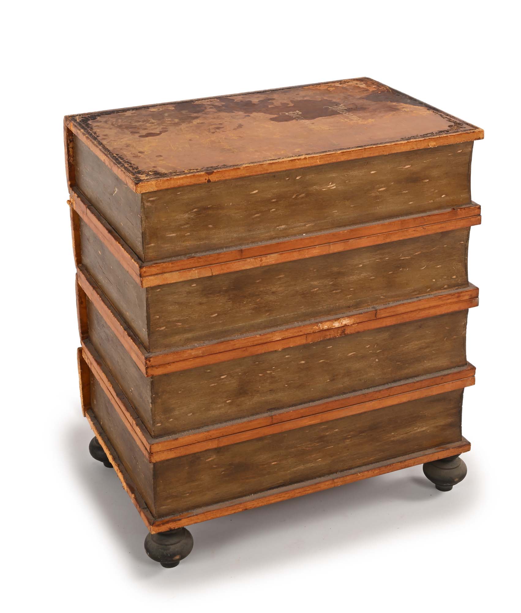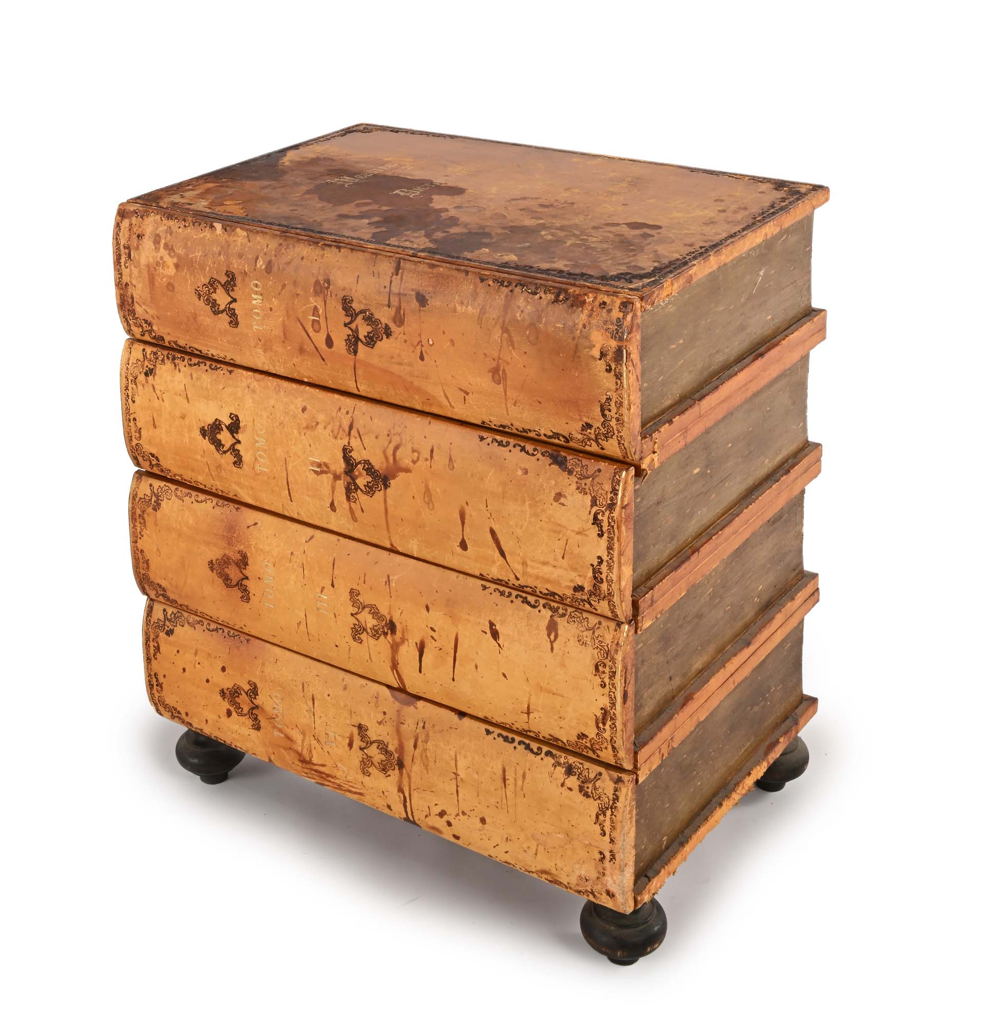 Cassettone simulante libri impilati in legno rivestito in cuoio costituito da...