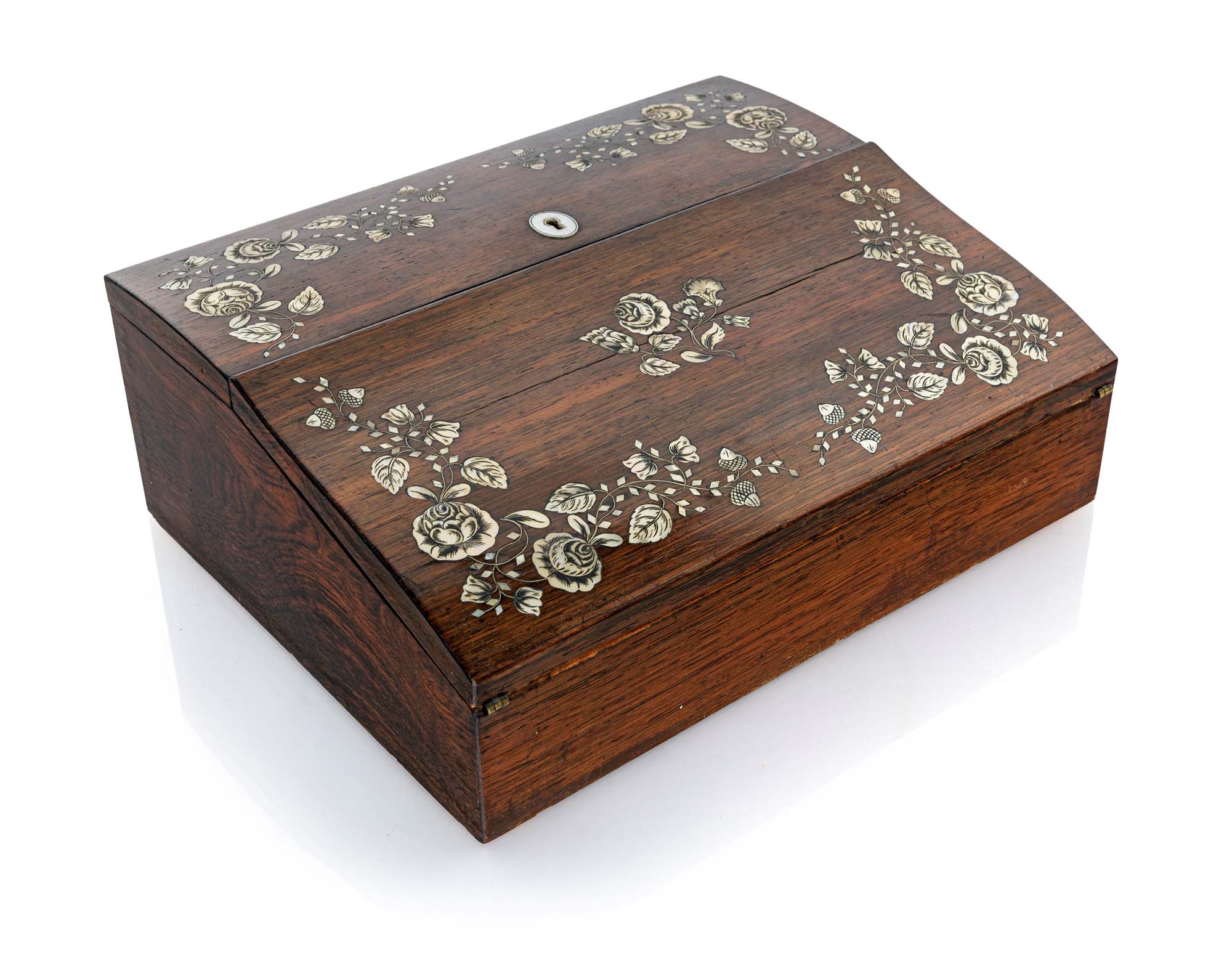 Cassetta da scrivania con intarsi in madreperla, artigianato anglo-indiano,...