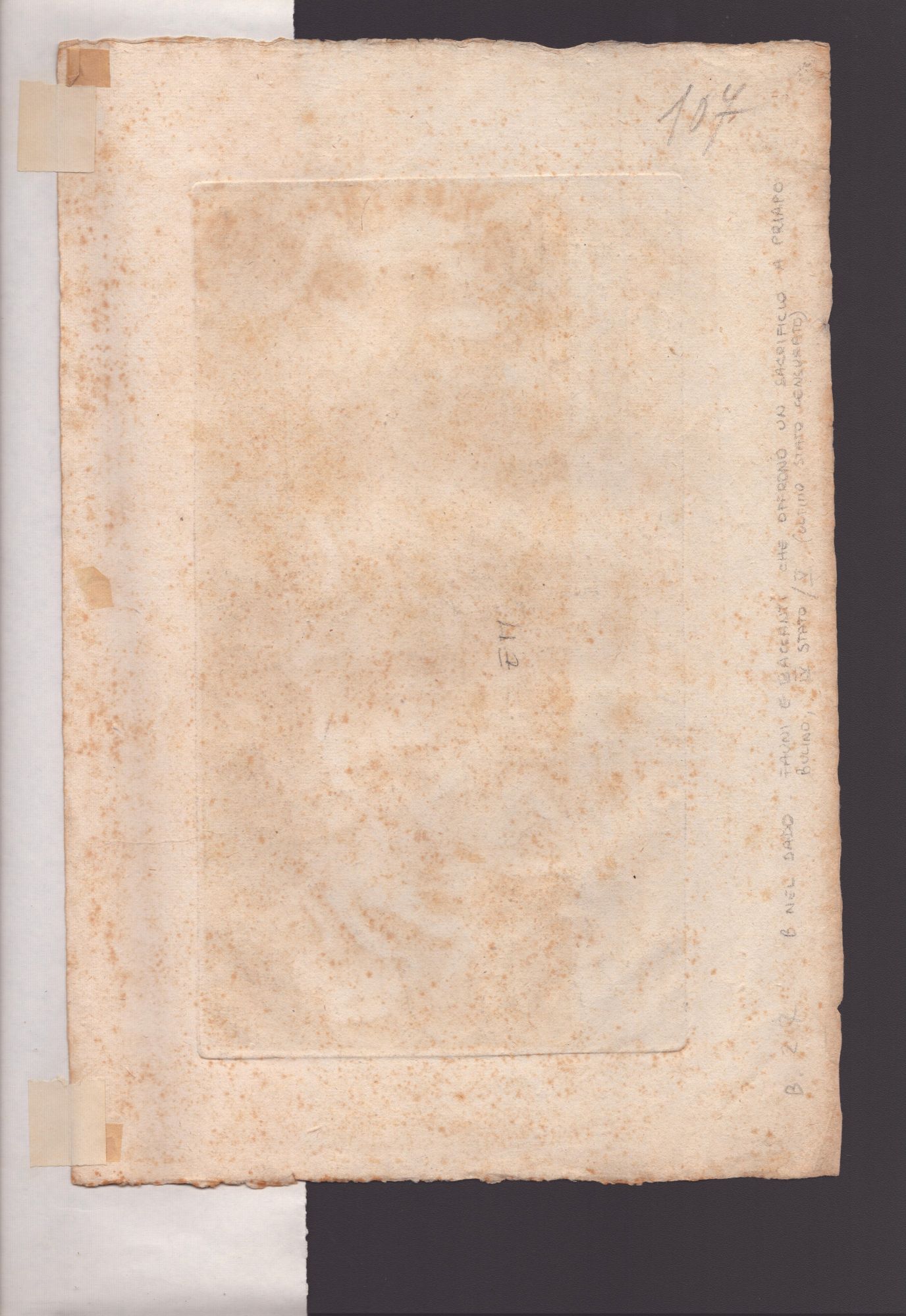 Molto bella impressione su carta vergata. Esemplare in buono stato di conservazione, salvo alcune fioriture. Residui cartacei al verso.