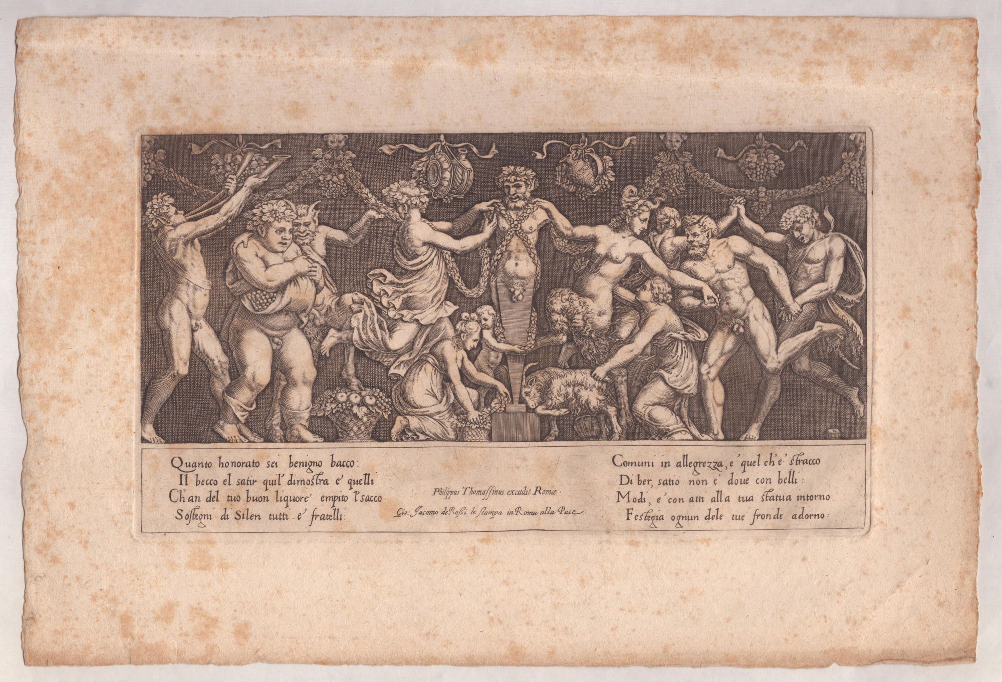 Bulino, 160 x 287 mm (lastra), 254 x 374 mm (foglio). IV stato su 4, con l'indirizzo di Philippe Thomassin e Giovanni Giacomo de' Rossi Bartsch XV.203.27