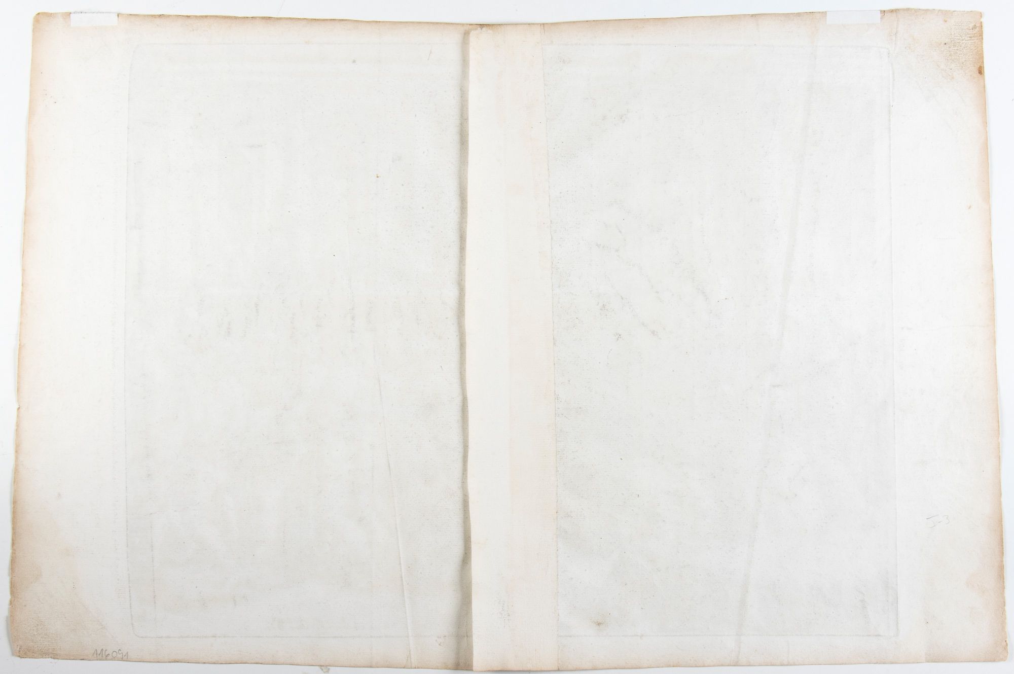Impressione stampata su due fogli di carta vergata uniti, con filigrana. Foglio in ottimo stato di conservazione, salvo usure lungo i bordi e pieghe.