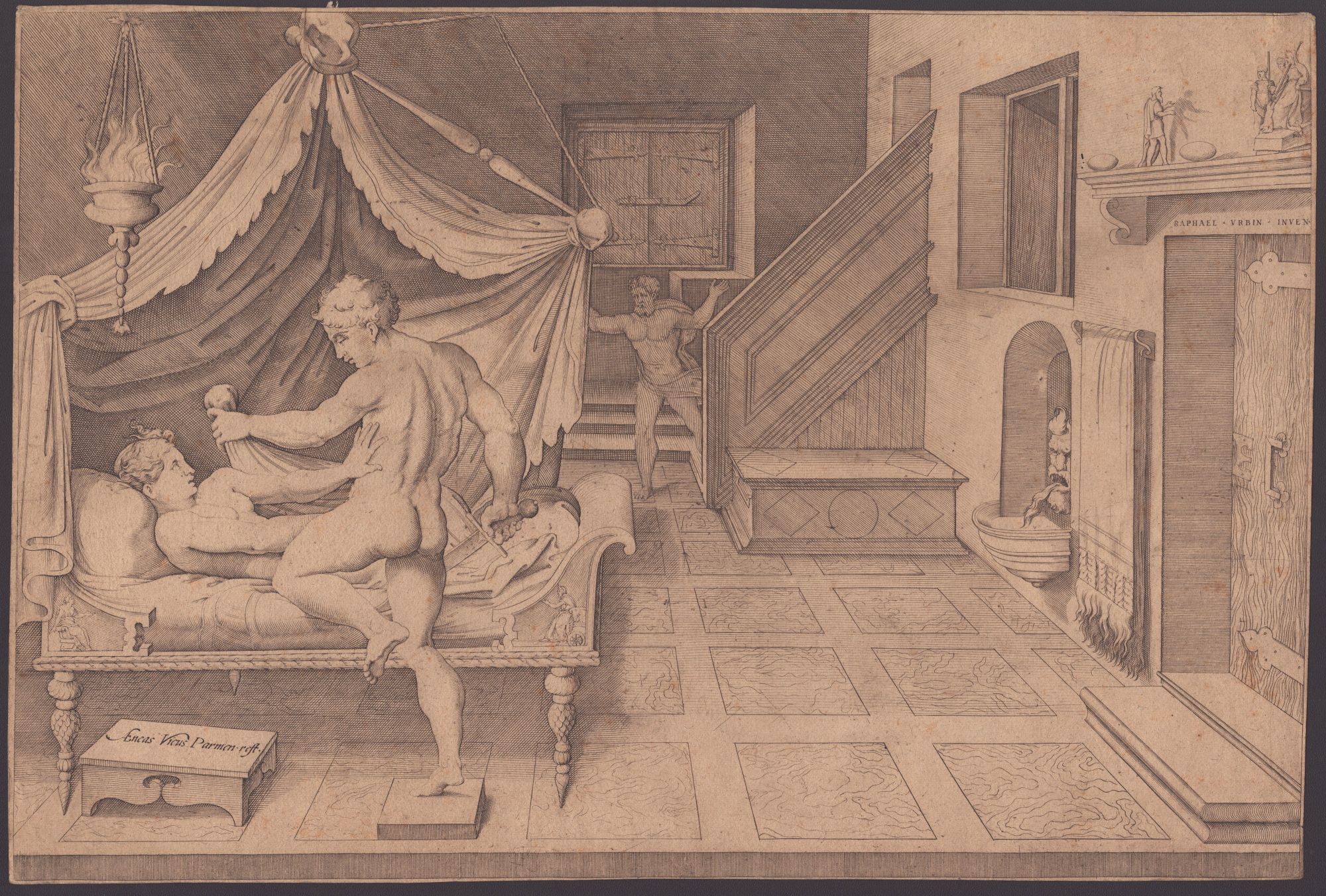 Enea Vico (1523 - 1567) Tarquinio e Lucrezia Bulino, 279 x 414 mm. II stato...