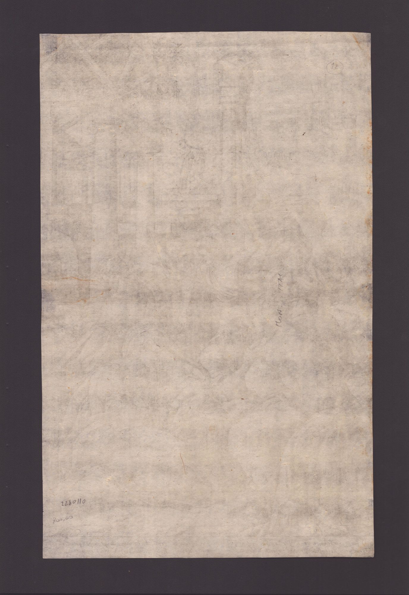 Bella impressione su carta vergata sottile con filigrana. Esemplare rifilato alla battuta della lastra, ma per il resto in ottime condizioni.
