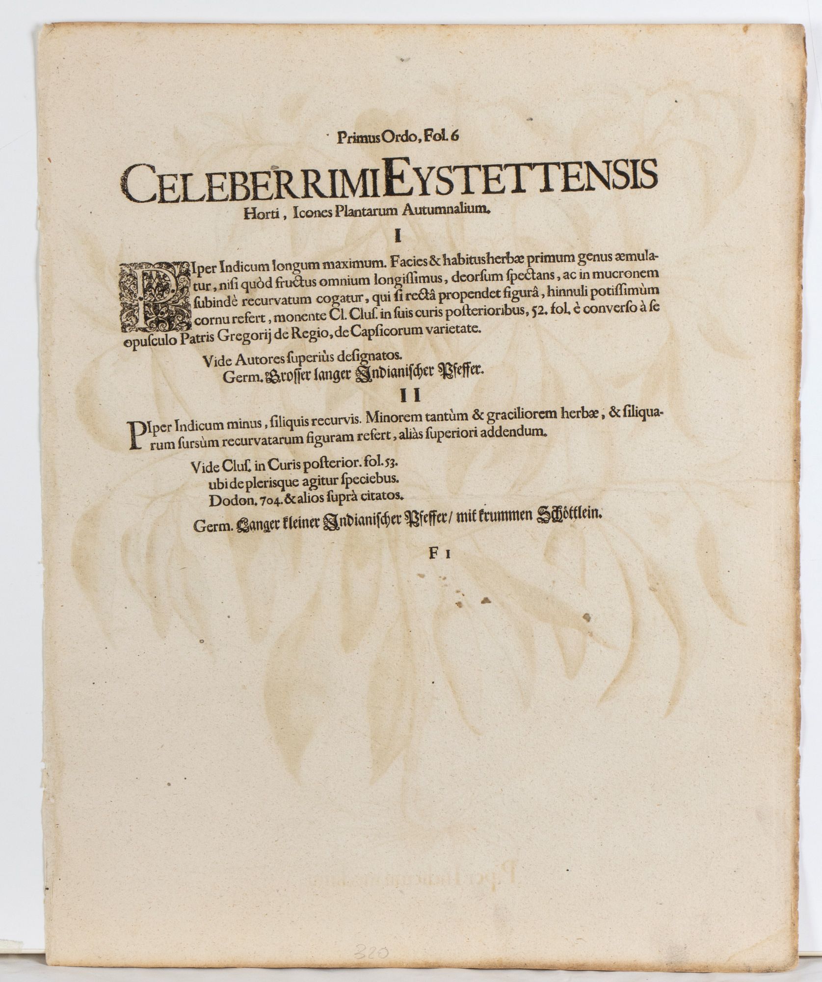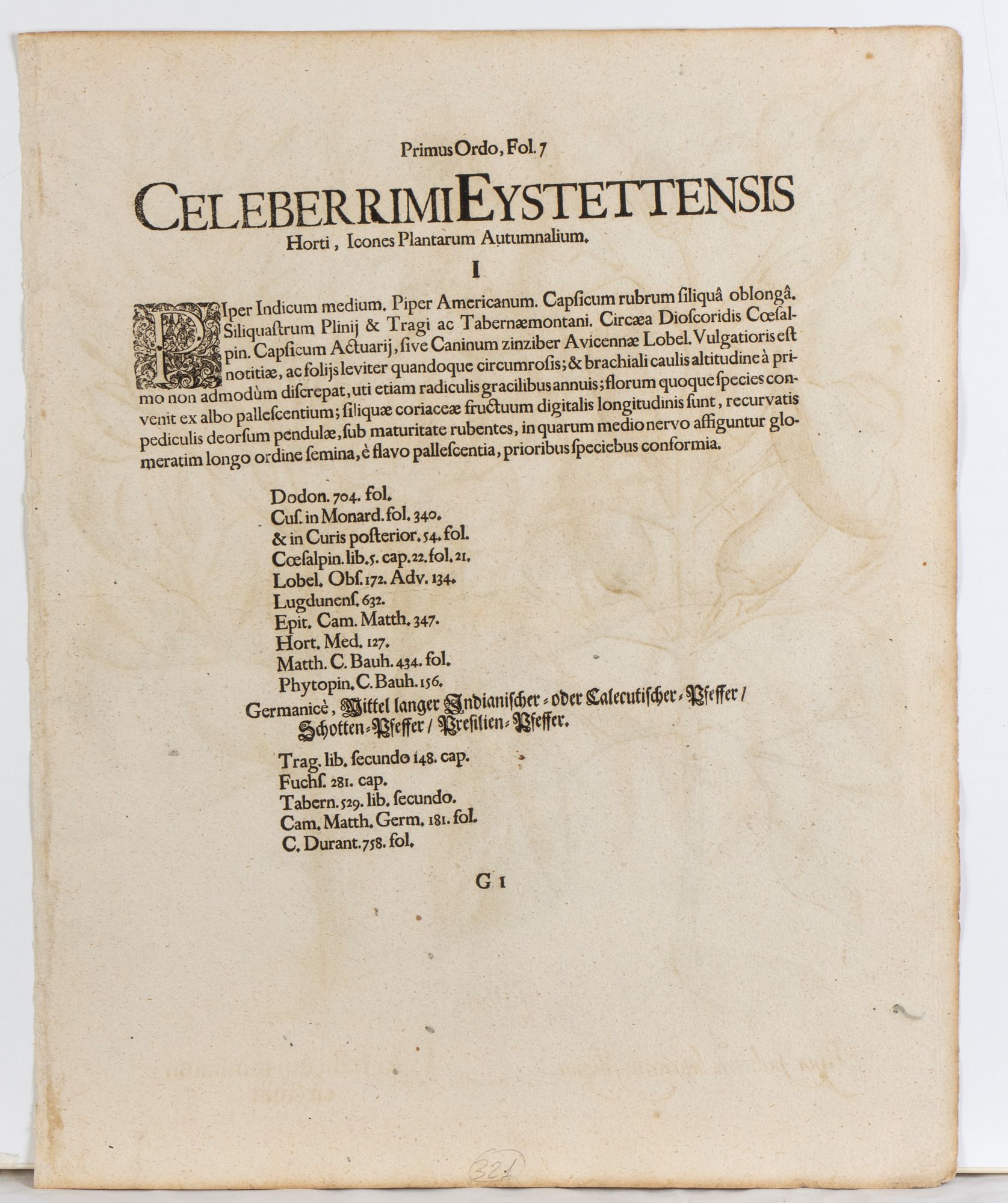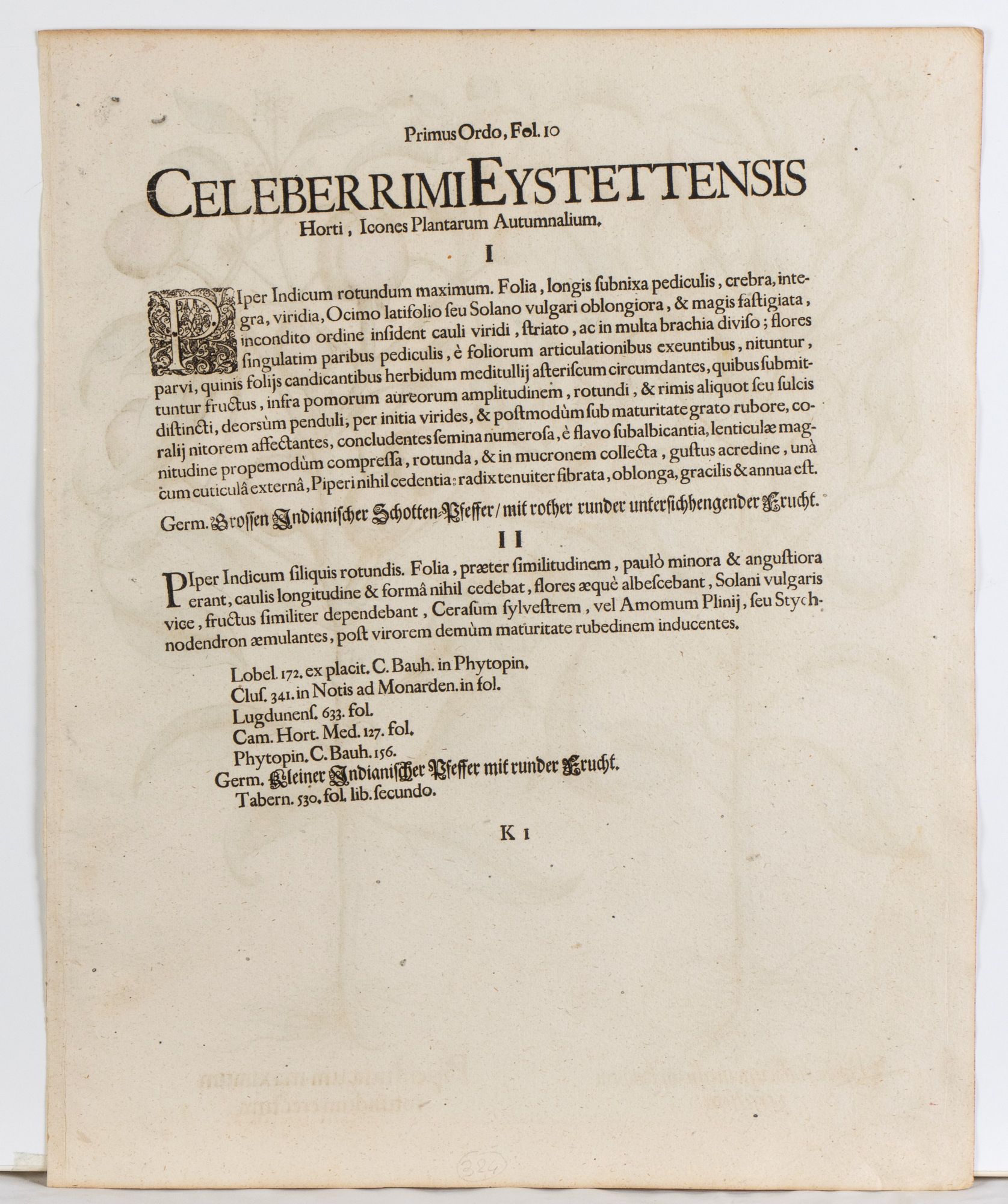 Basilius Besler (Norimberga, 1561 - Norimberga, 1629) Piper Indicum minimum...