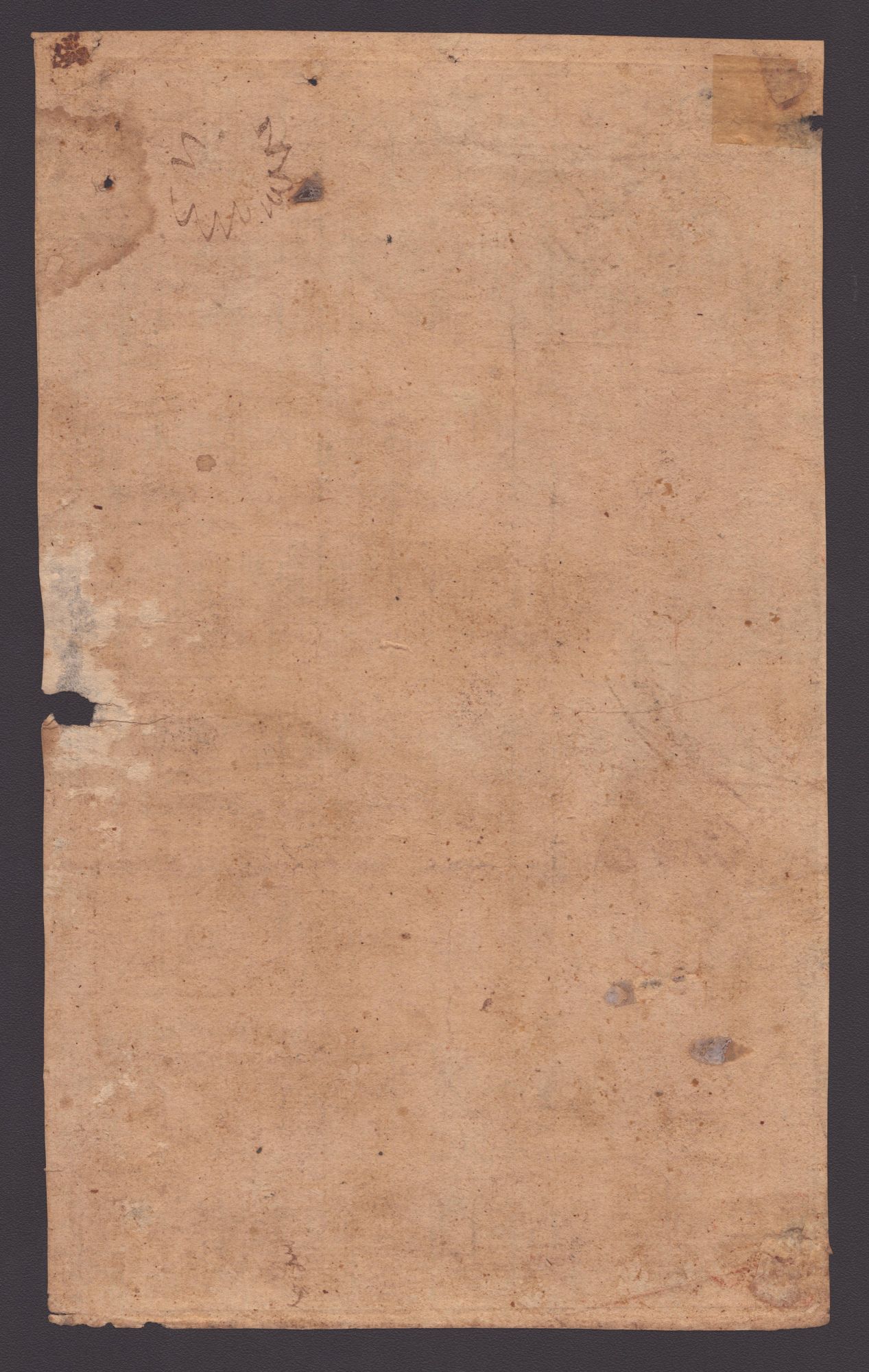 Bella impressione stampata su carta vergata. Foglio uniformemente brunito, margini su tre lati, rifilato senza margine inferiore. Mancanza al centro in basso, presenza di varie macchie.
