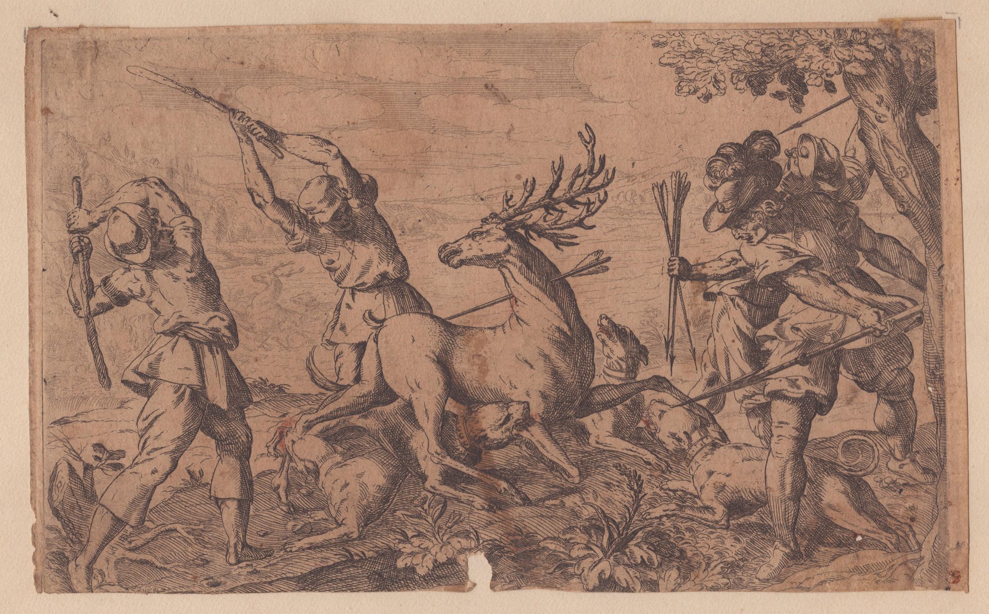 Acquaforte, 146 x 242 mm. Dalla serie di cacce, pubblicata da Justus Sadeler. Bartsch XVII.276.34.