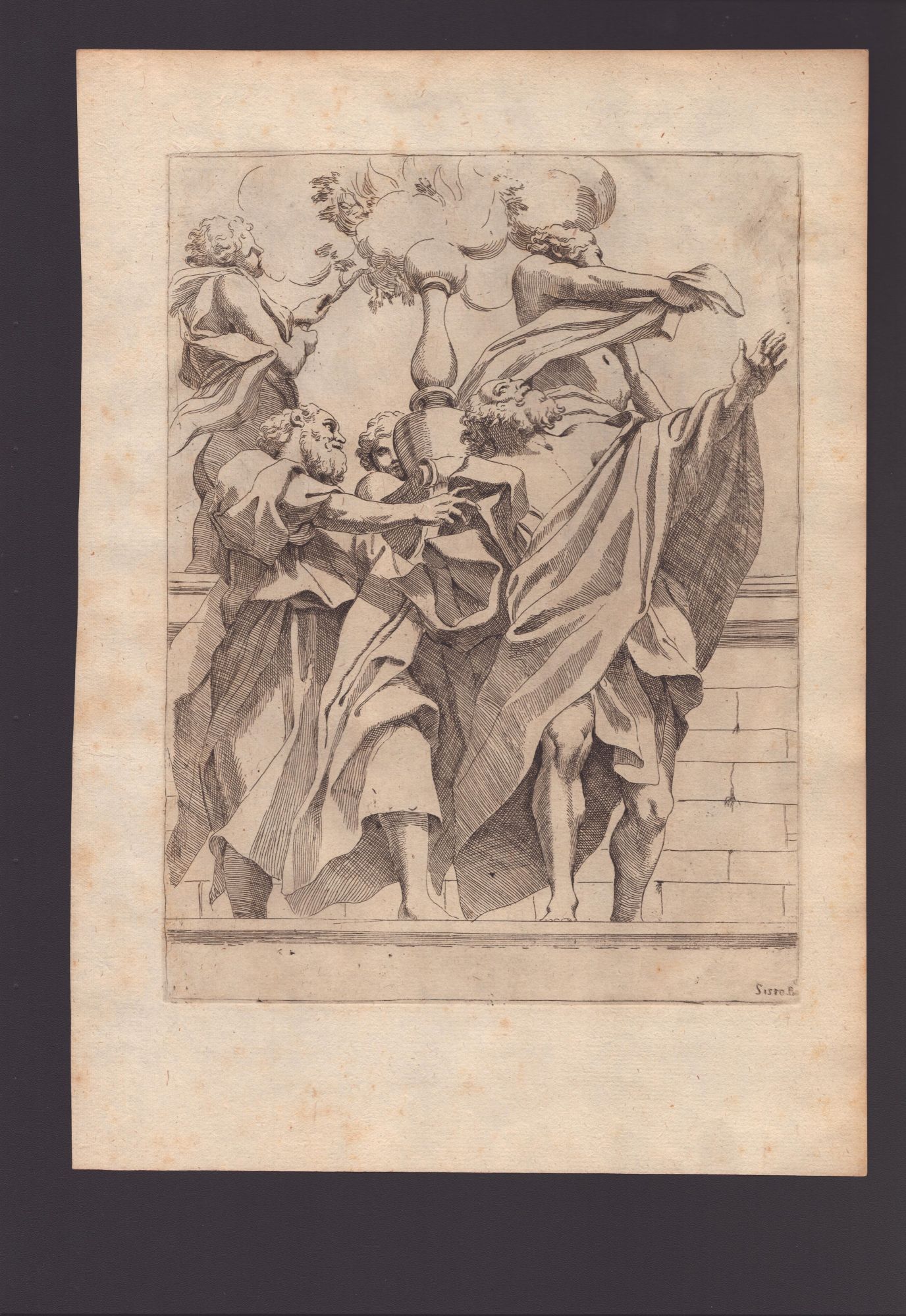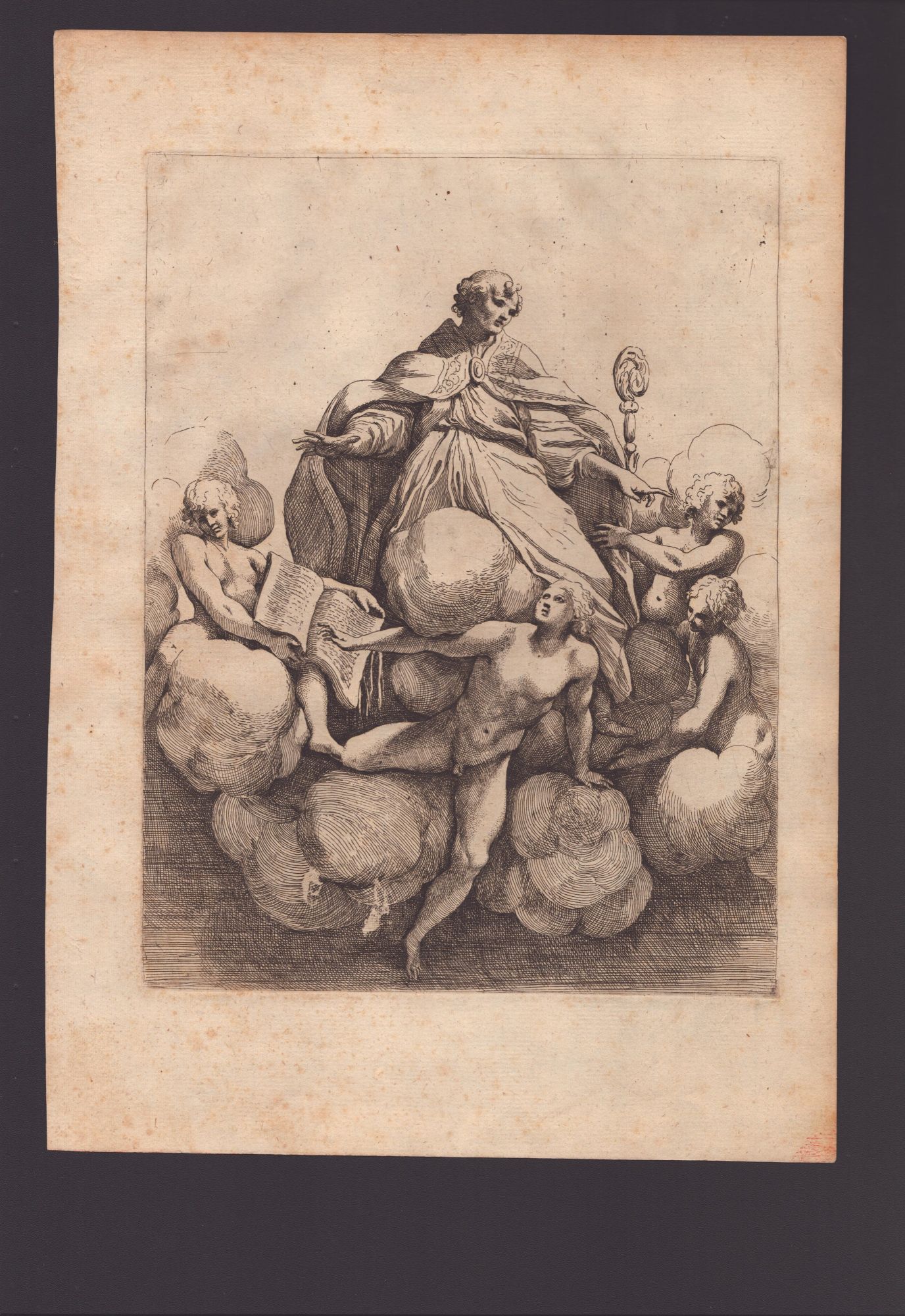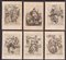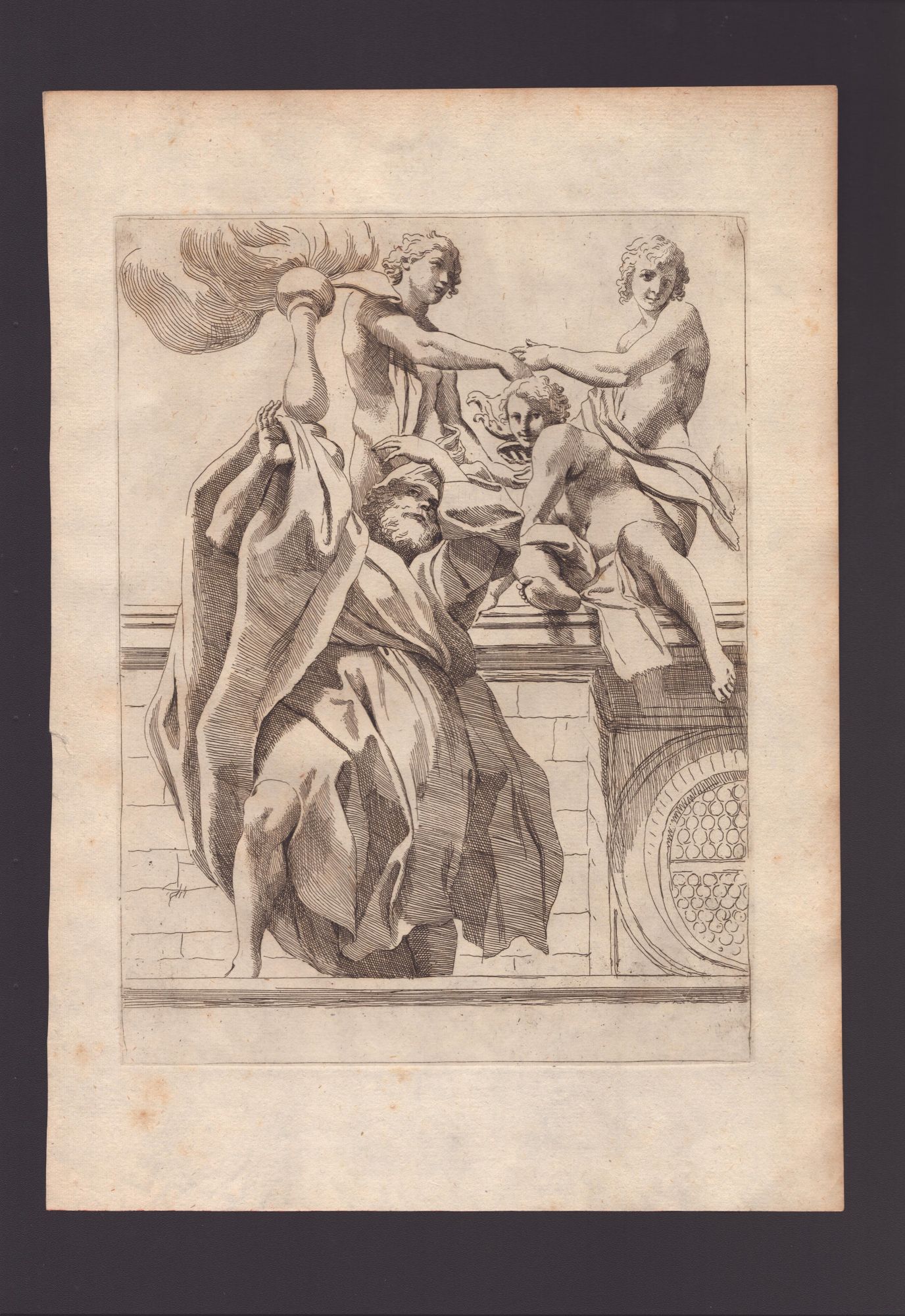 Serie completa di 6 incisioni dagli affreschi di Antonio Correggio. Acquaforte, 280 x 210 mm ca. (cad. lastra), 370 x 260 mm ca. (cad. foglio). II stato con l'indirizzo di Giovanni Giacomo de Rossi. Bartsch XVIII.358.27-38.