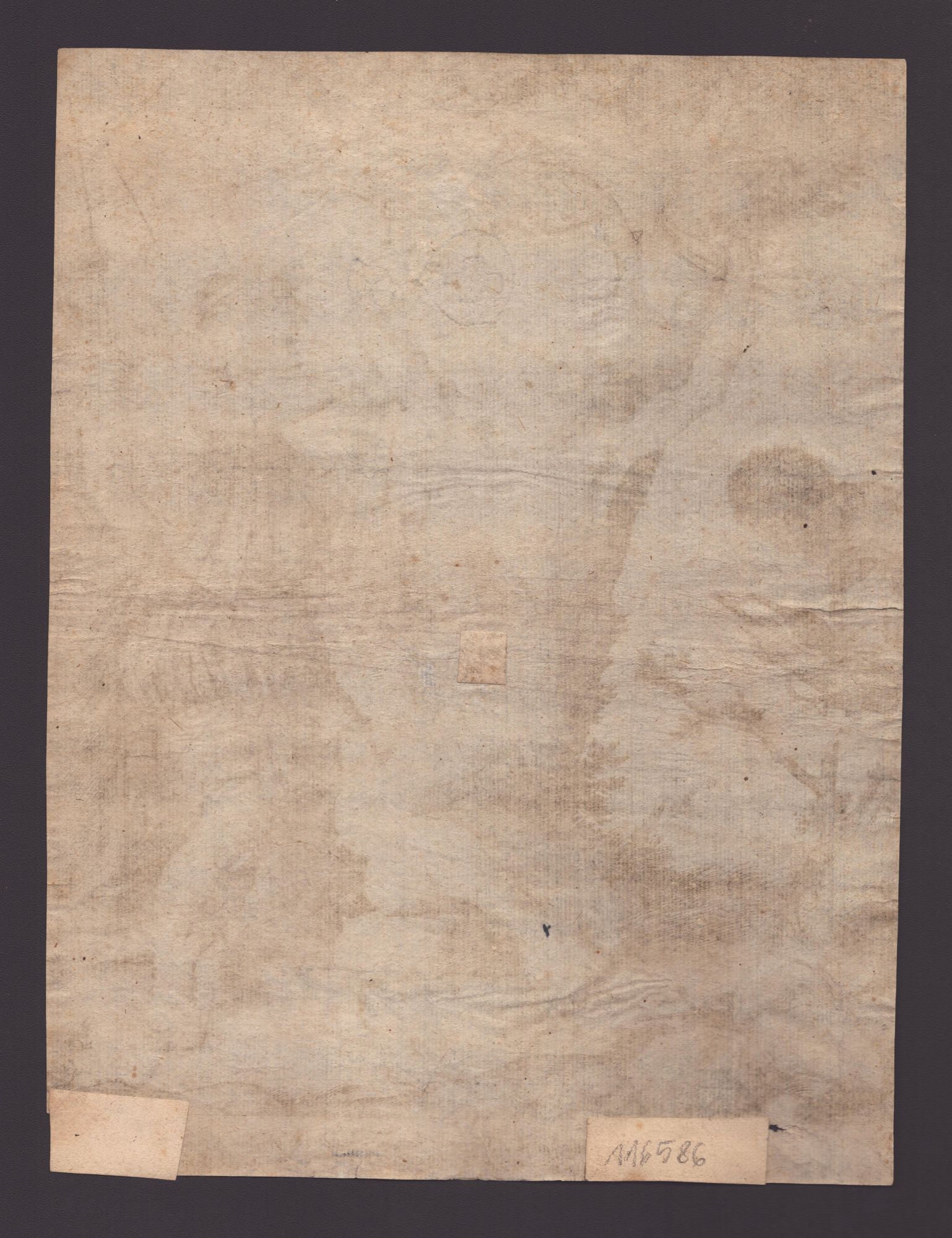 Molto bella impressione su carta vergata sottile con filigrana (chiave). Esemplare rifilato. Presenta due mancanze al margine inferiore, restaurate al verso, e un altro piccolo restauro al centro della composizione. Carta leggermente brunita, ma per il resto in buono stato di conservazione.