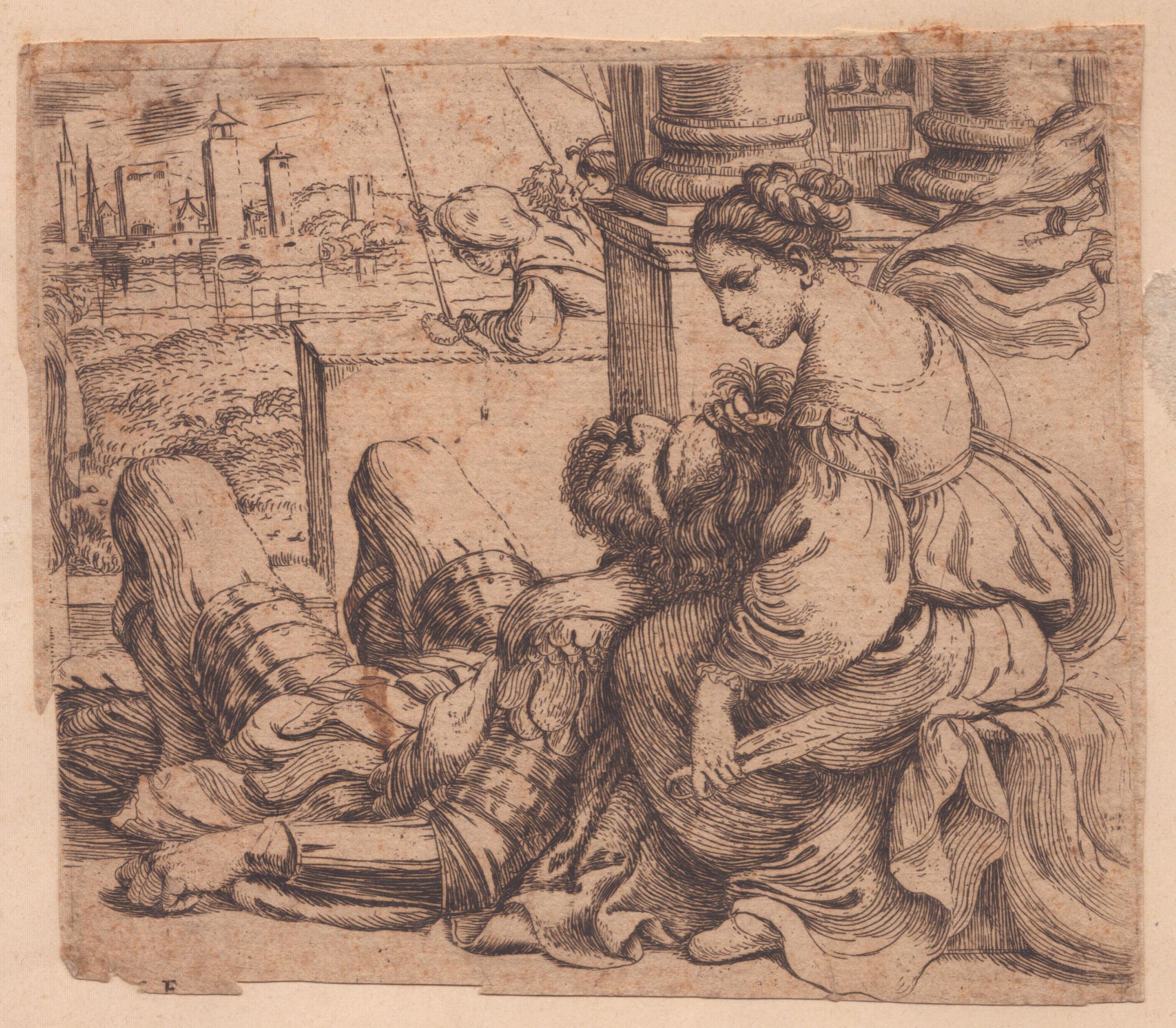 Giuseppe Caletti (1595 ca. - 1660) Sansone e Dalila Acquaforte, 135 x 153 mm....