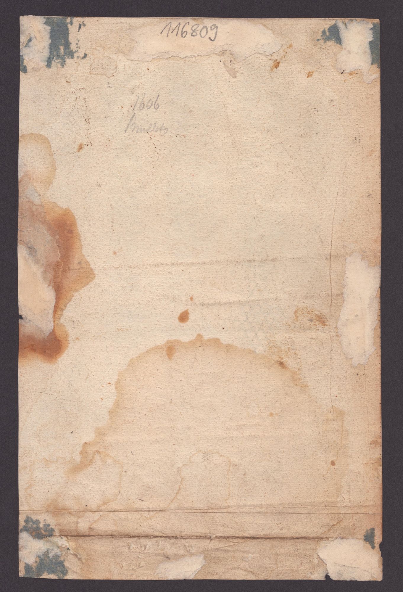 Esemplare stampato su carta vergata con filigrana. Carta leggermente brunita, con alcune pieghe a destra, piccolissime mancanze sul margine inferiore e destro, alcune macchie e residui di carta al verso.