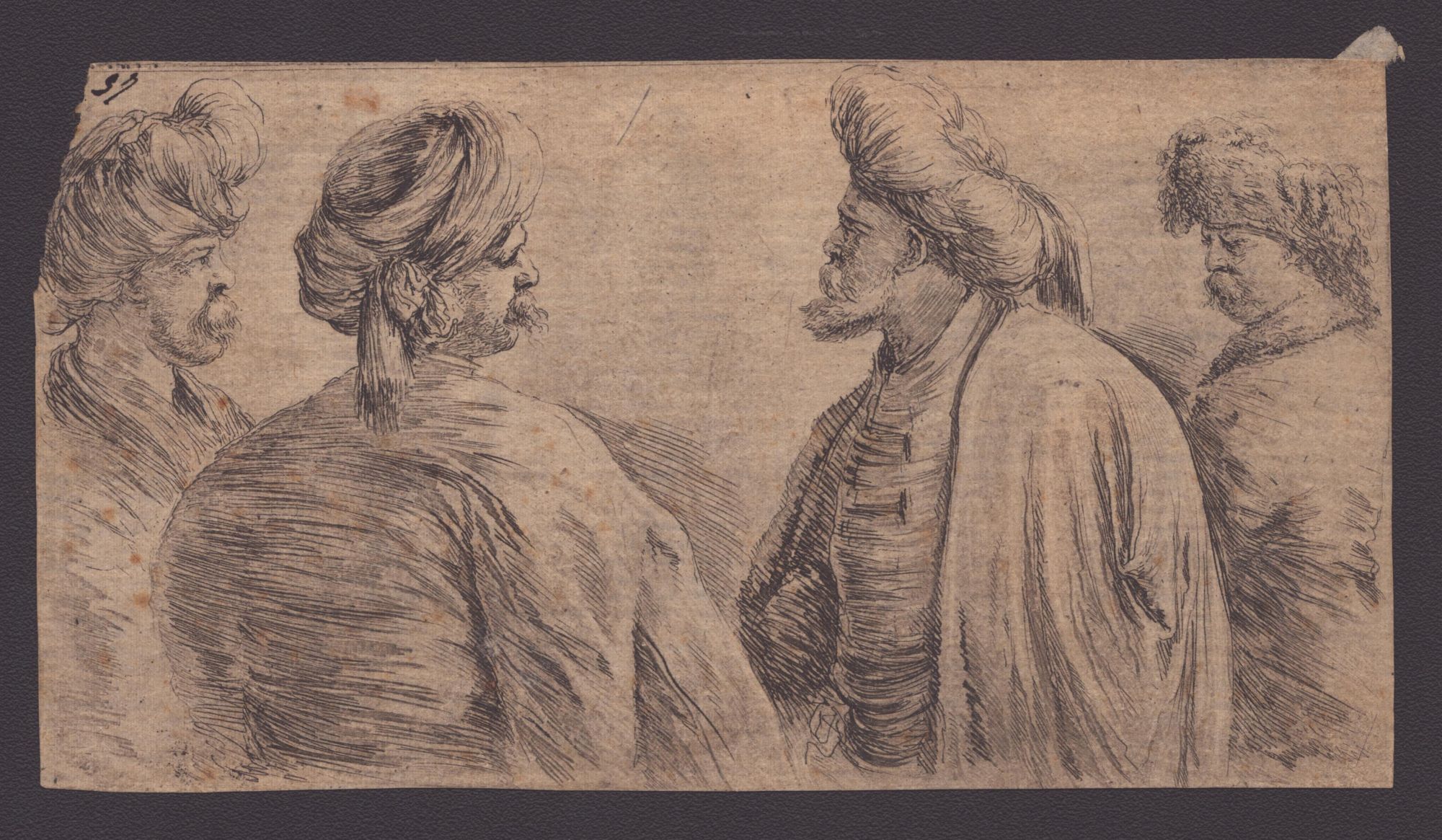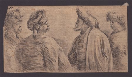 Stefano della Bella (1610 - 1664) Quattro turchi che indossano turbanti...