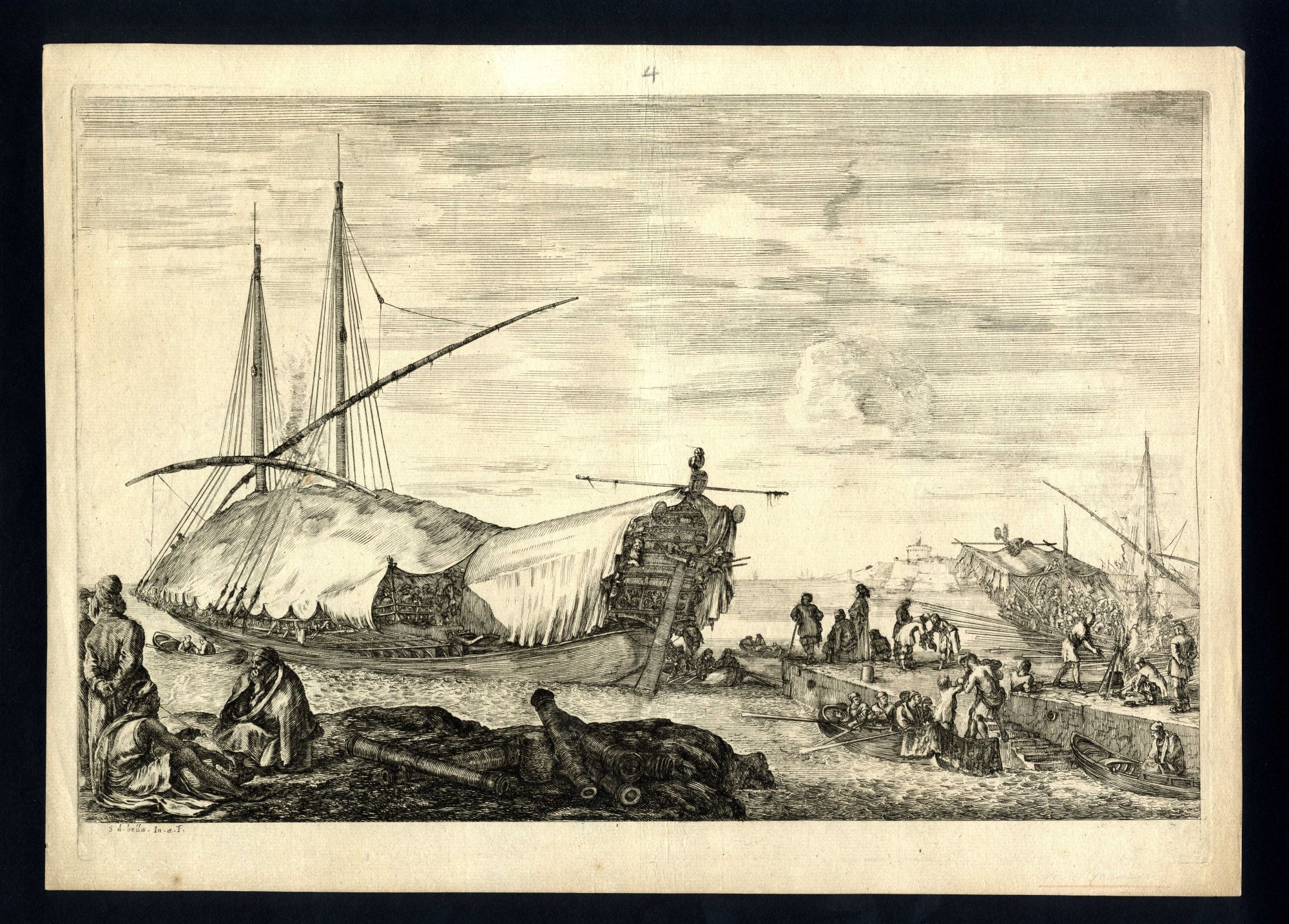 Stefano della Bella (1610 - 1664) Nave nel Porto di Livorno Acquaforte, 380 x...