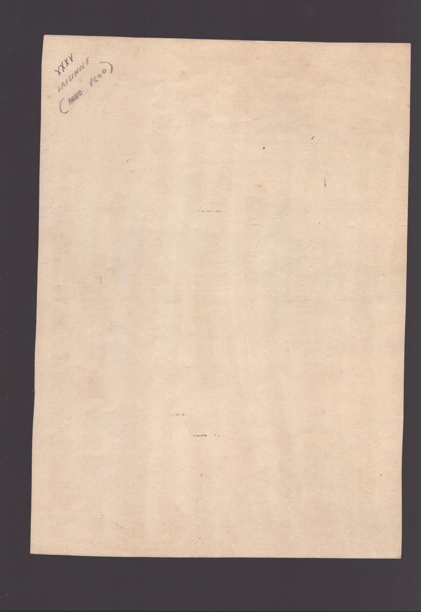 Nitida impressione su carta vergata. Esemplare controfondato su un altro foglio di carta vergata. Per il resto, in ottime condizioni salvo tracce di pieghe orizzontali centrali.