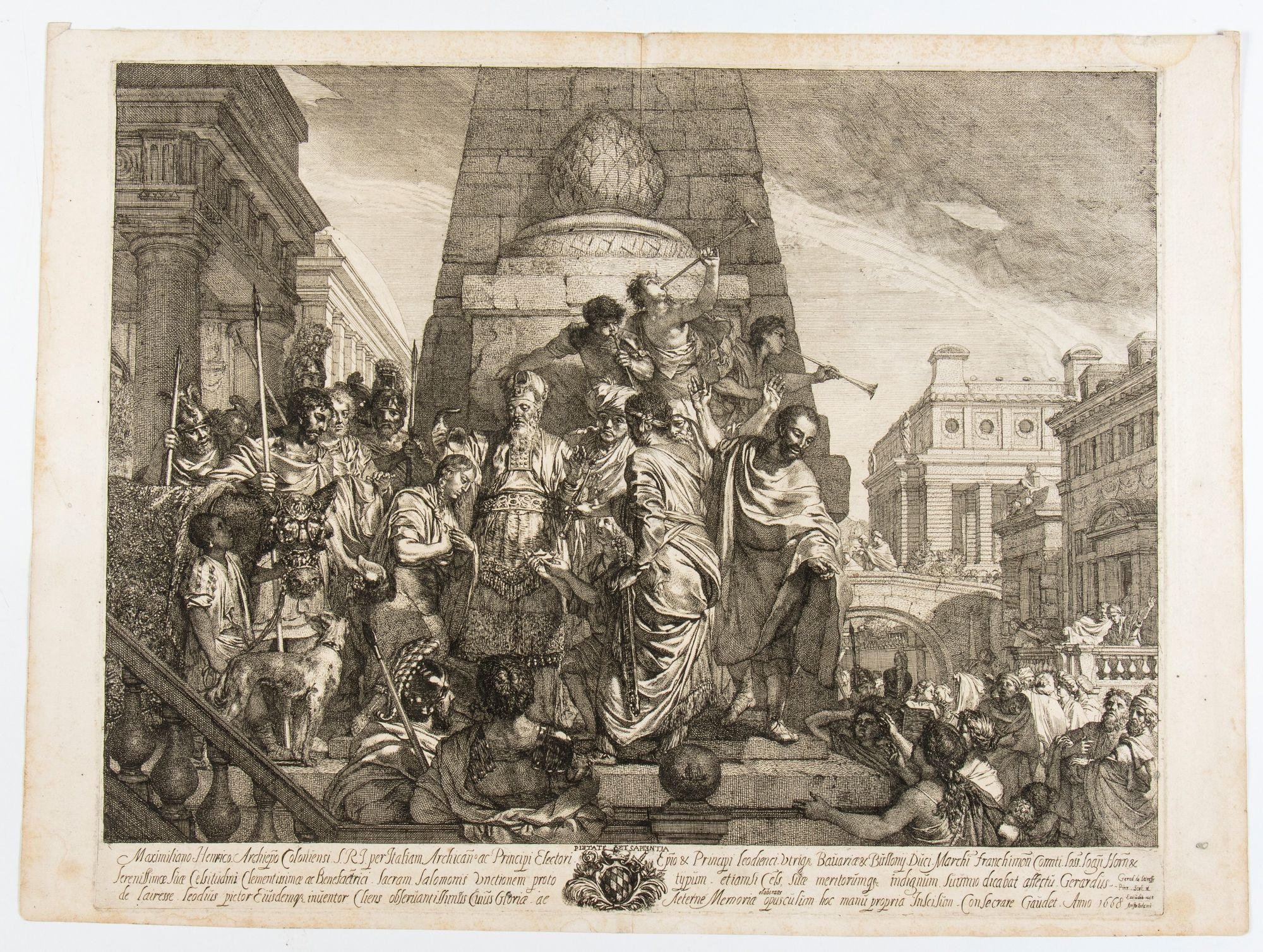 Gérard de Lairesse (1640 - 1711) Unzione di Salomone Acquaforte, 430 x 535 mm...