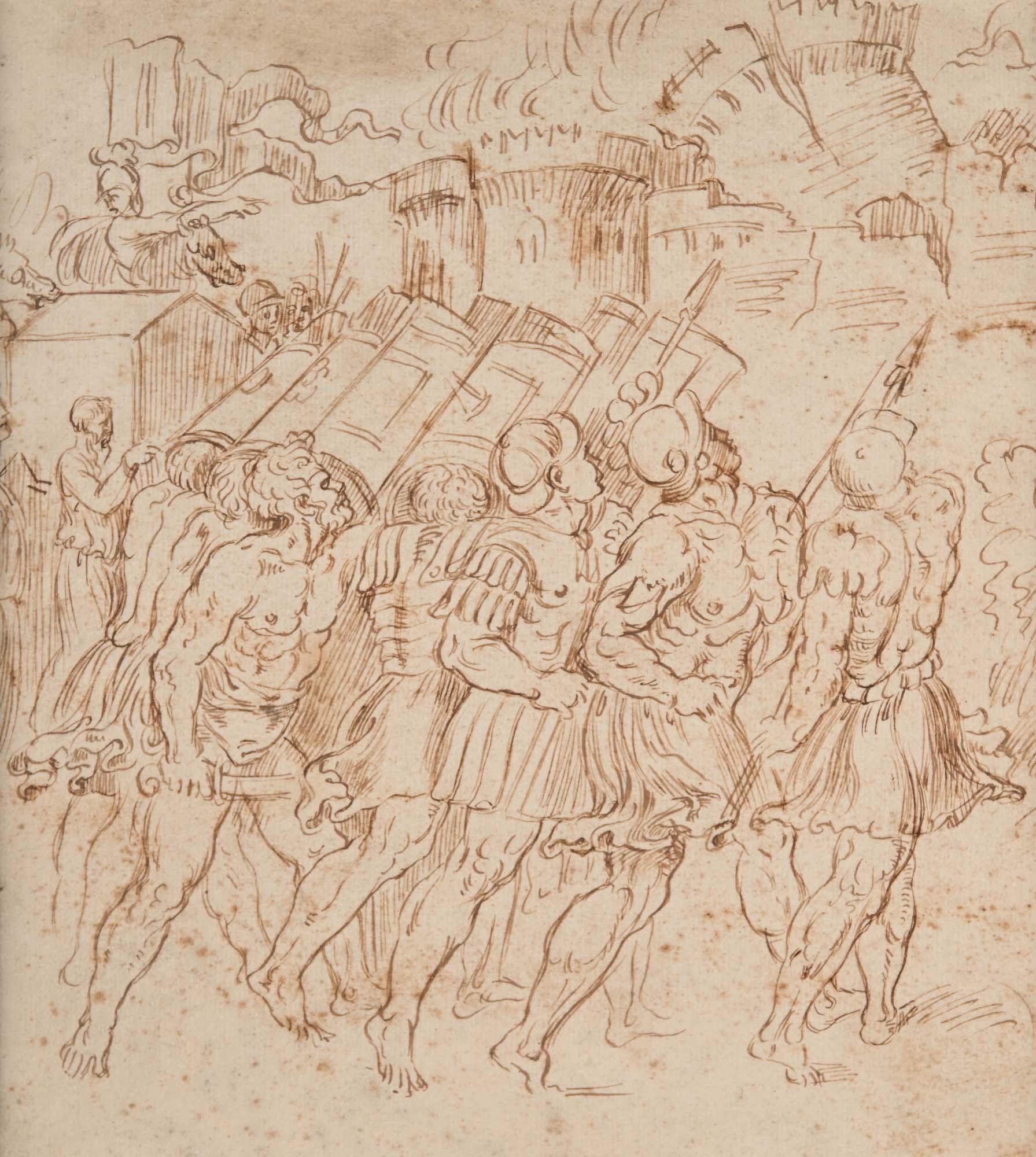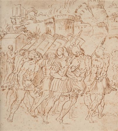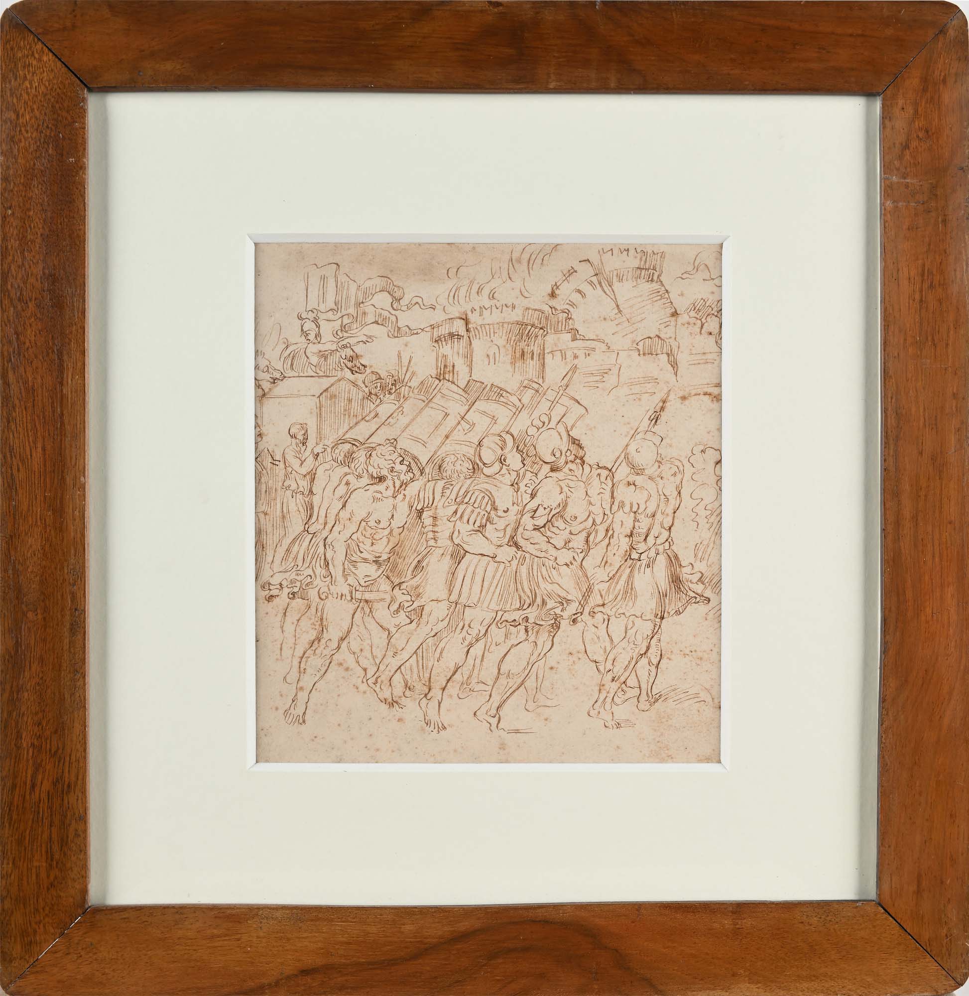 Scuola Romana del XVII secolo La presa di Gerico china su carta mm 210x190 -...