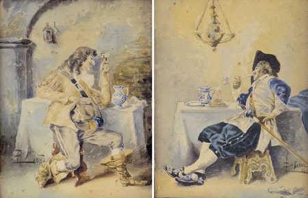 DE SERVI LUIGI Lucca 1863 - 1945Interno con moschettiere, 1882acquerello su...