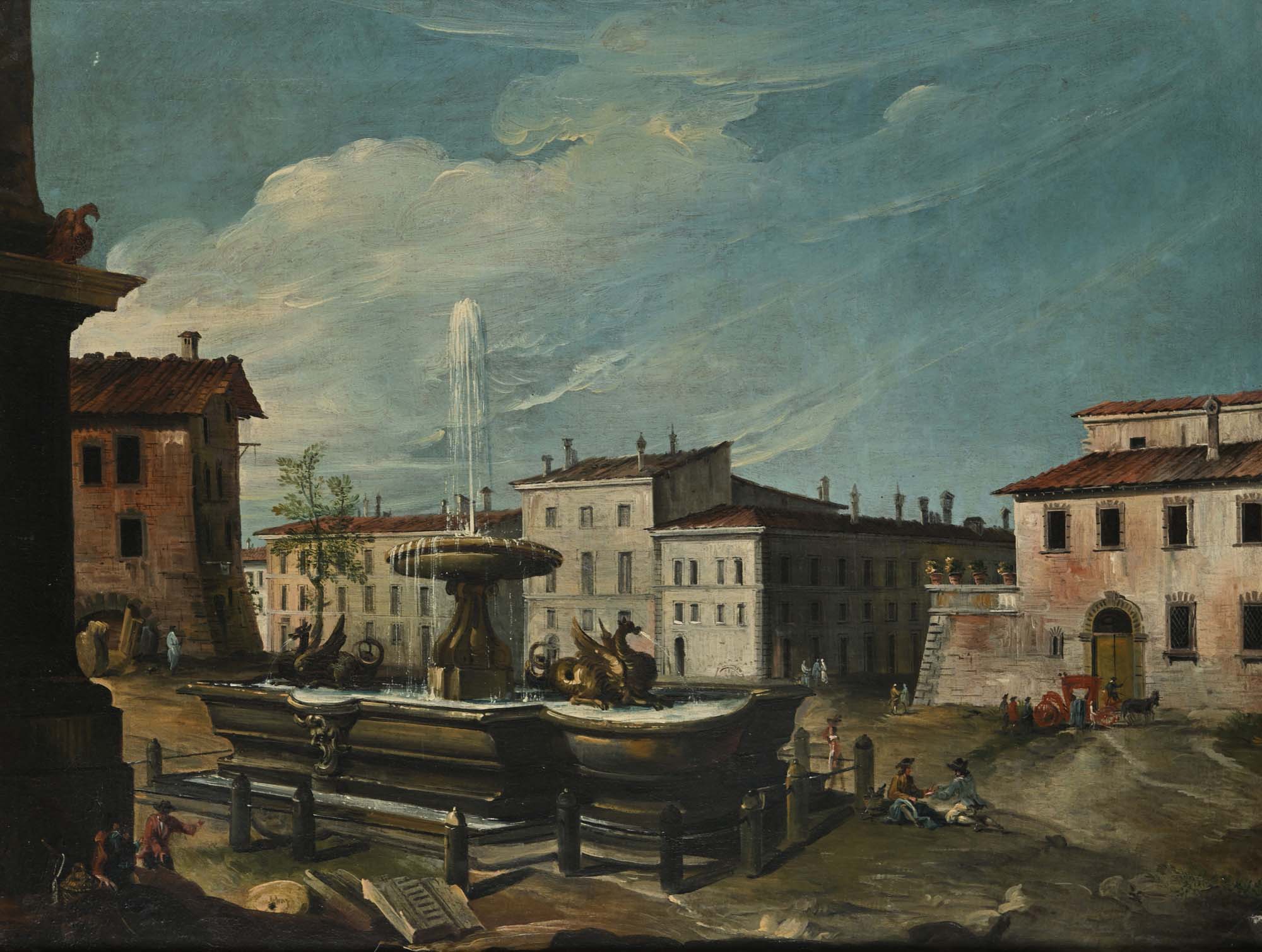 Scuola Romana del XVIII secolo Veduta con la piazza di Santa Maria Maggiore...