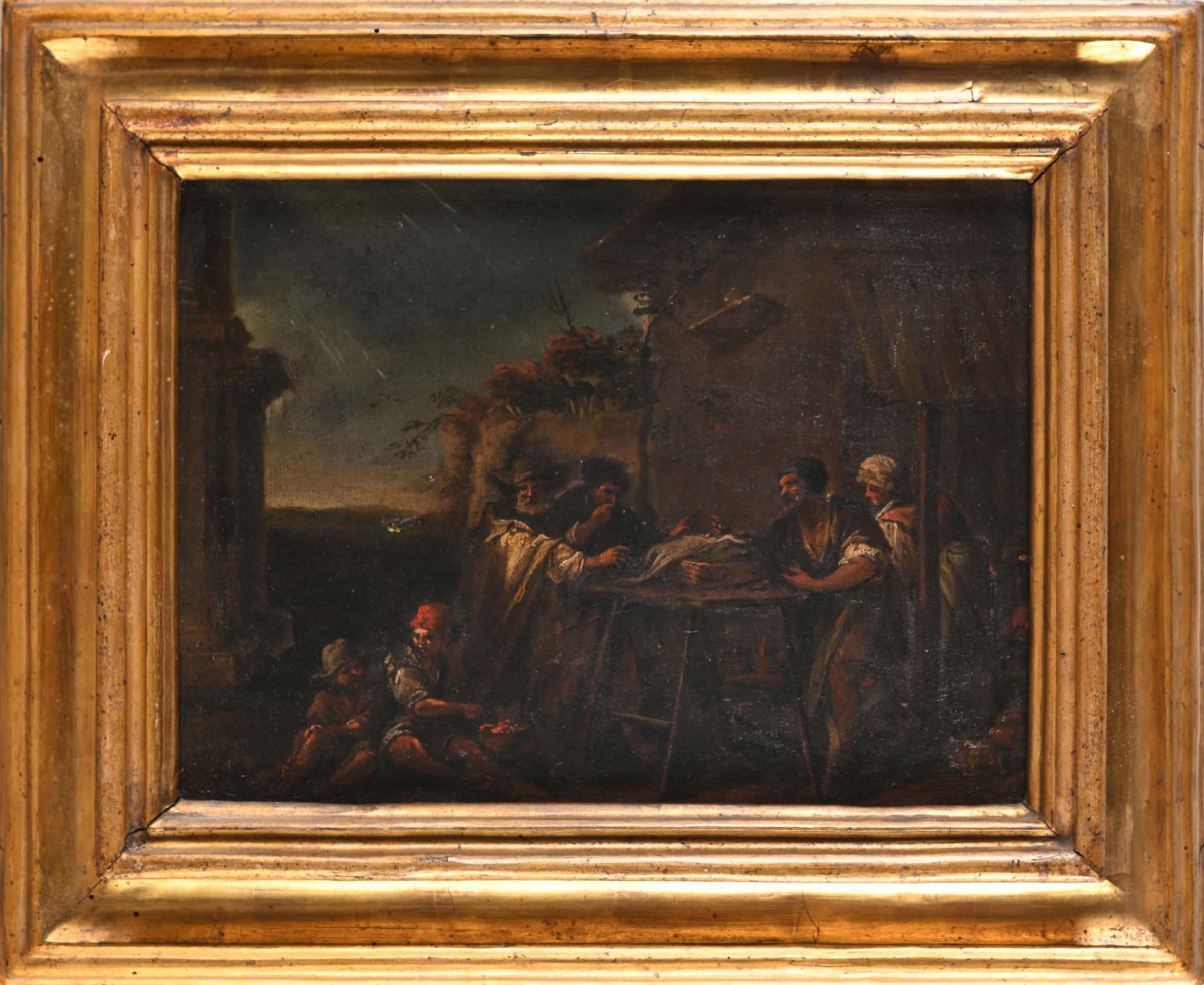 Michelangelo Cerquozzi (attribuito a) Roma 1602-Roma 1660 Sosta dei viandanti nella campagna romana olio su tela cm 26x34 - con cornice cm 38x46